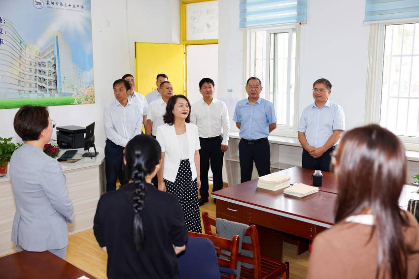 在人民路小学教育集团,区领导重点了解学校以“爱”为核心的“三爱”育人体系及显著的体育、科技特色,对该校荣获基础教育国家级教学成果奖二等奖、获评“全国青少年篮球特色学校”等称号表示肯定。“‘习惯成就人生’的校训在这里落地生根,‘三爱’教育融入课堂、浸润活动,你们用心打造的‘有温度的教育’,正是孩子们健康成长的沃土!”郭方芳说,学校要持续创新办学理念,德智体全方位提高教育教学水平,为培养身心健康的卓越人才奠定基础,进一步擦亮“学在樊城”这张名片。走进拥有73年悠久历史的市级示范园——樊西教工幼儿园,区领导被孩子们在“快乐剪纸”特色活动中的专注神情所吸引。该园秉承“用爱养育、用心教育”宗旨,近三年家长满意度连续超98%,是“湖北省卫生保健工作先进单位”。郭方芳对教职工的辛勤付出给予高度评价,指出幼儿教育是扣好人生“第一粒扣子”的关键阶段,广大幼儿教师要坚守教育初心,以“游戏启智”的方式引导孩子探索世界,真正践行以儿童为本,用心用情让每个孩子都能成长为“最好的自己”。