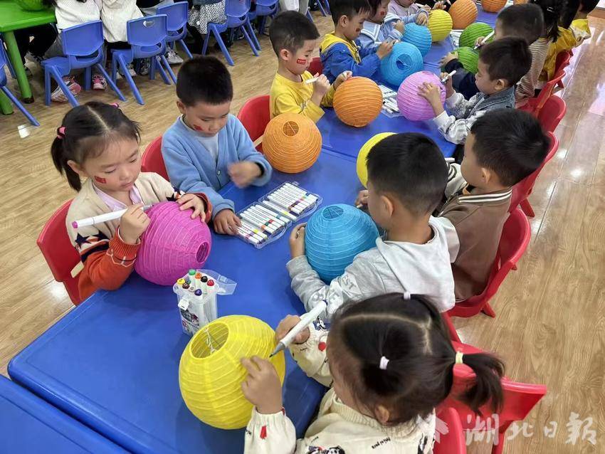 DIY灯笼环节便是文化与创意的交融。孩子们自主创作,他们拿起五彩斑斓的丙烯马克笔,在天马行空的想象中,为一个个素白的灯笼赋予生命力。有的画上鲜艳的五星红旗,有的描绘圆圆的月亮和可爱的玉兔,还有的画满了象征团圆的各色图案。小小的灯笼,不仅照亮了孩子们的笑容,更点亮了他们心中对传统佳节的理解与喜爱。