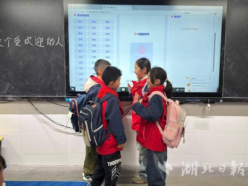 课程的核心环节“小组评比会”设计巧妙。同学们在小组内积极讨论,推选“最受欢迎的同学”并阐述理由。汤老师及时将学生们提到的优秀品质,如“主动帮助”“诚实守信”等,以“智慧树”的形式直观呈现并予以强化。