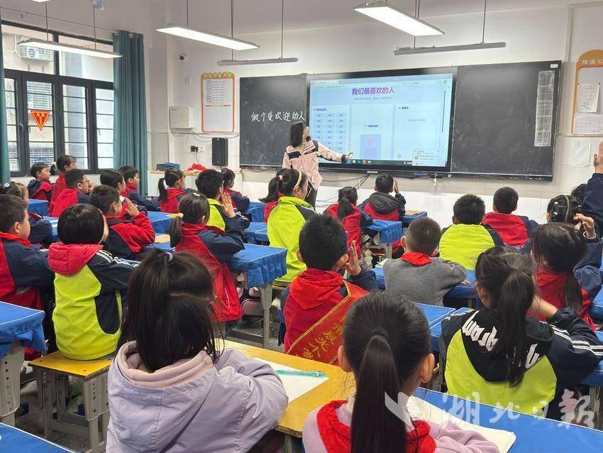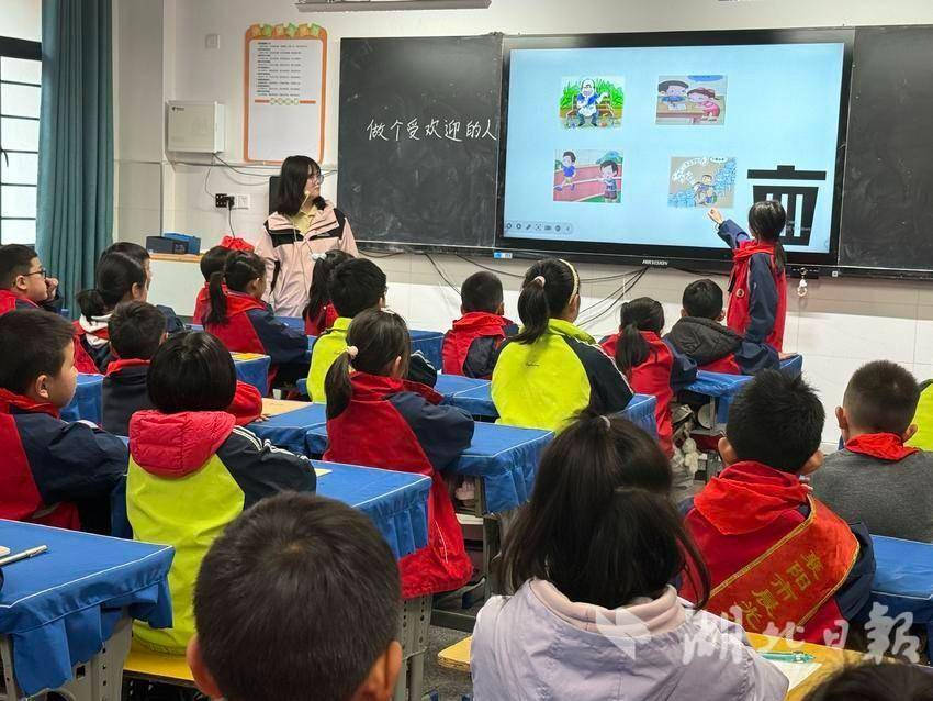 本网讯(通讯员张霞、朱尹雪)11月10日下午,襄阳市晨光小学三年级第一堂别开生面的心理健康教育活动课《做个受欢迎的人》正式开讲。主讲老师汤璇一走进教室,便以富有感染力的互动瞬间点燃了孩子们的学习热情,吸引了全体学生积极参与。
