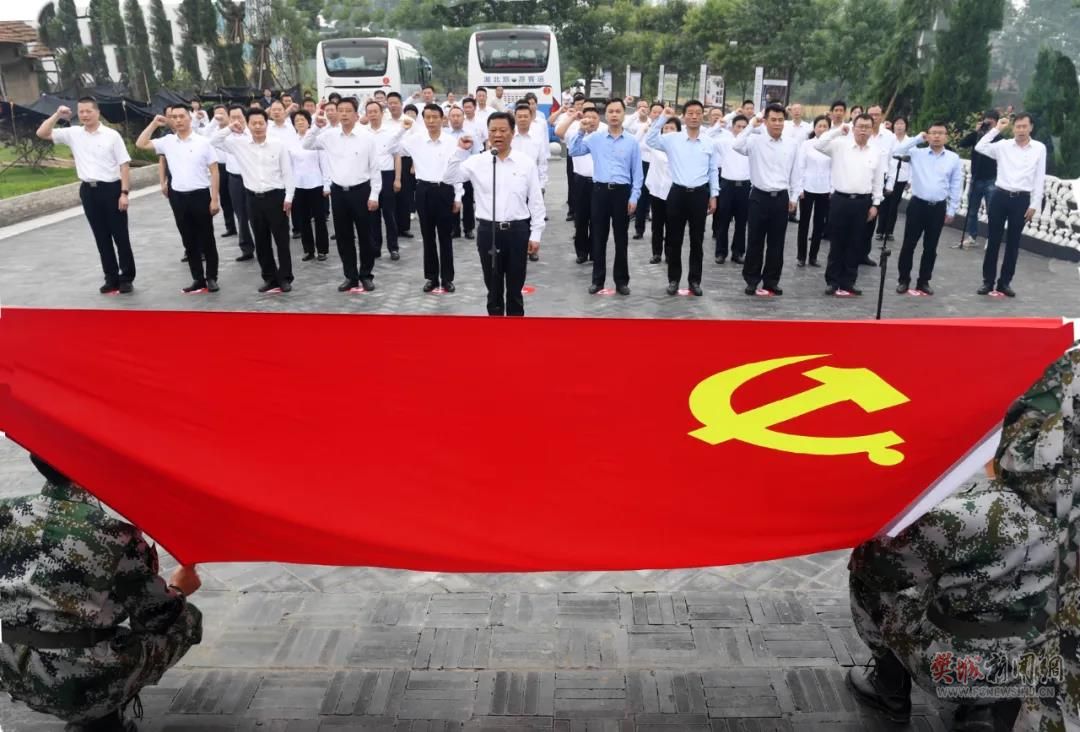 “我志愿加入中国共产党,拥护党的纲领,遵守党的章程,履行党员义务,执行党的决定……”在纪念馆外的小广场上,柴普军带领全体党员干部面对党旗,举起右拳,重温入党誓词,感受革命先烈为了追求人民幸福抛头颅、洒热血的英勇无畏精神,进一步强化使命担当。
