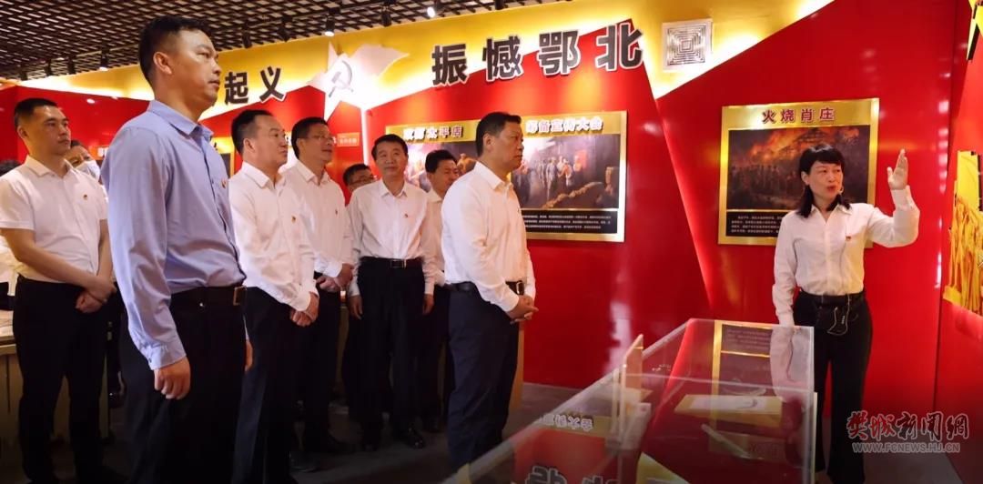 初夏的肖庄农民革命纪念馆,树木环绕,绿草如茵,鸟叫虫鸣声声入耳,一派生机勃勃的景象。在讲解员的引领下,柴普军一行进入纪念馆展厅参观,详细了解肖庄农民起义的起源及经过,感受革命火种的点燃和传播。展厅内陈列大量珍贵的历史照片和历史文物,向大家诉说着曾经在这片热土上,革命烈士用生命谱写了惊天动地的英雄赞歌,诠释了忠诚于党、忠诚于人民、忠诚于共产主义事业的坚定信念。大家一边聆听讲解员的讲解,一边浏览一幅幅历史画卷,时而驻足凝视一件件历史文物,仿佛回到那个波澜壮阔的峥嵘岁月,追随革命先辈的足迹,深刻感悟“革命理想高于天”的高尚情怀。