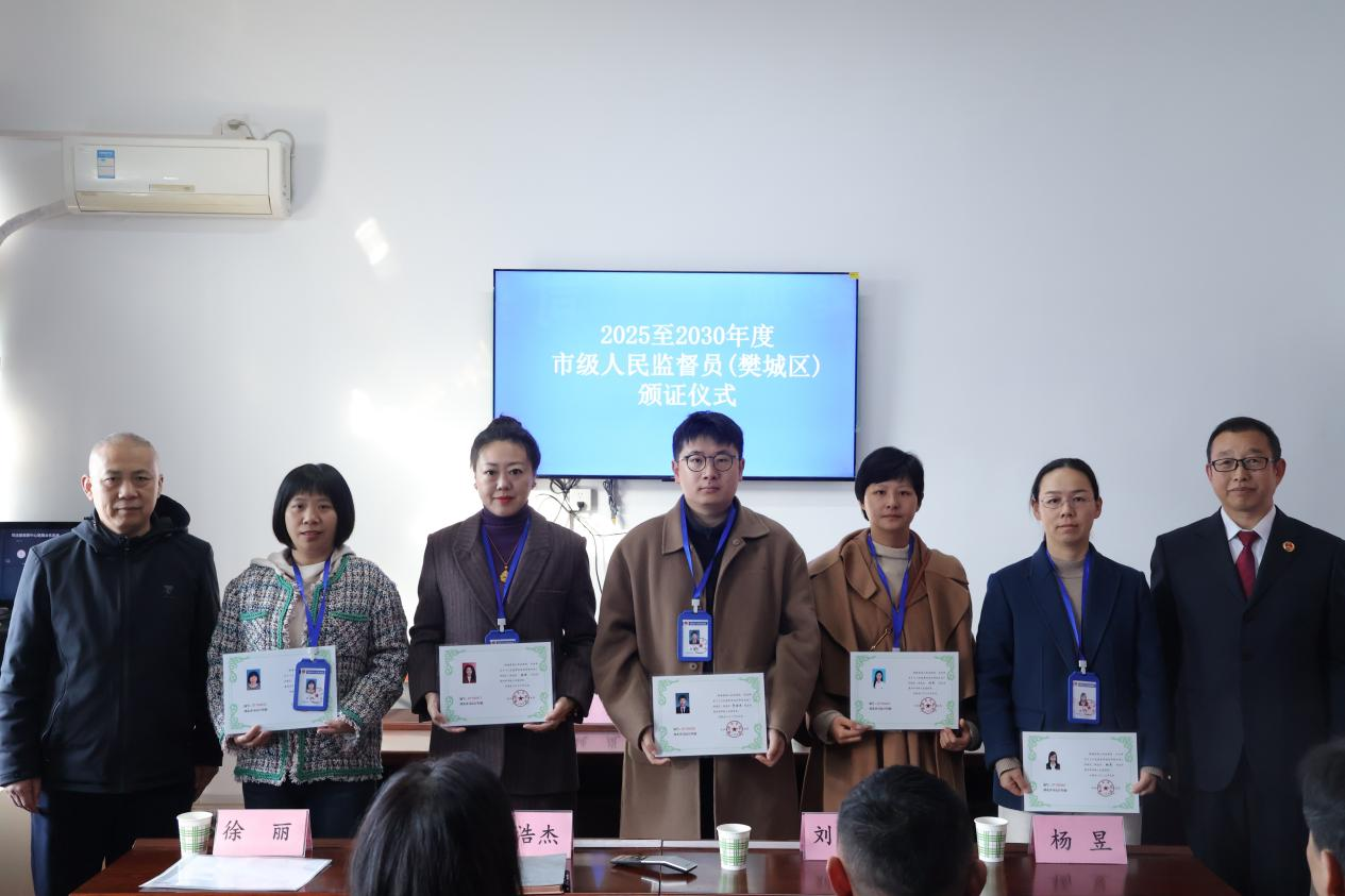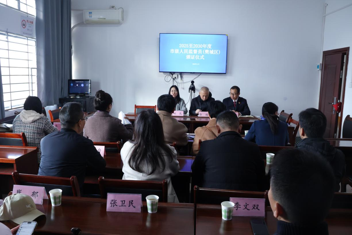 本网讯(通讯员 柯一景)为进一步深化人民监督员制度改革,提升人民监督员履职的荣誉感与责任感,2025年11月21日,樊城区司法局组织开展2025至2030年度人民监督员颁证仪式,为新聘任的人民监督员颁发证书,标志着樊城区司法公开与民主监督工作再添新动力。区司法局党组成员、副局长徐超,区检察院第六检察部副主任刘斌出席活动。
