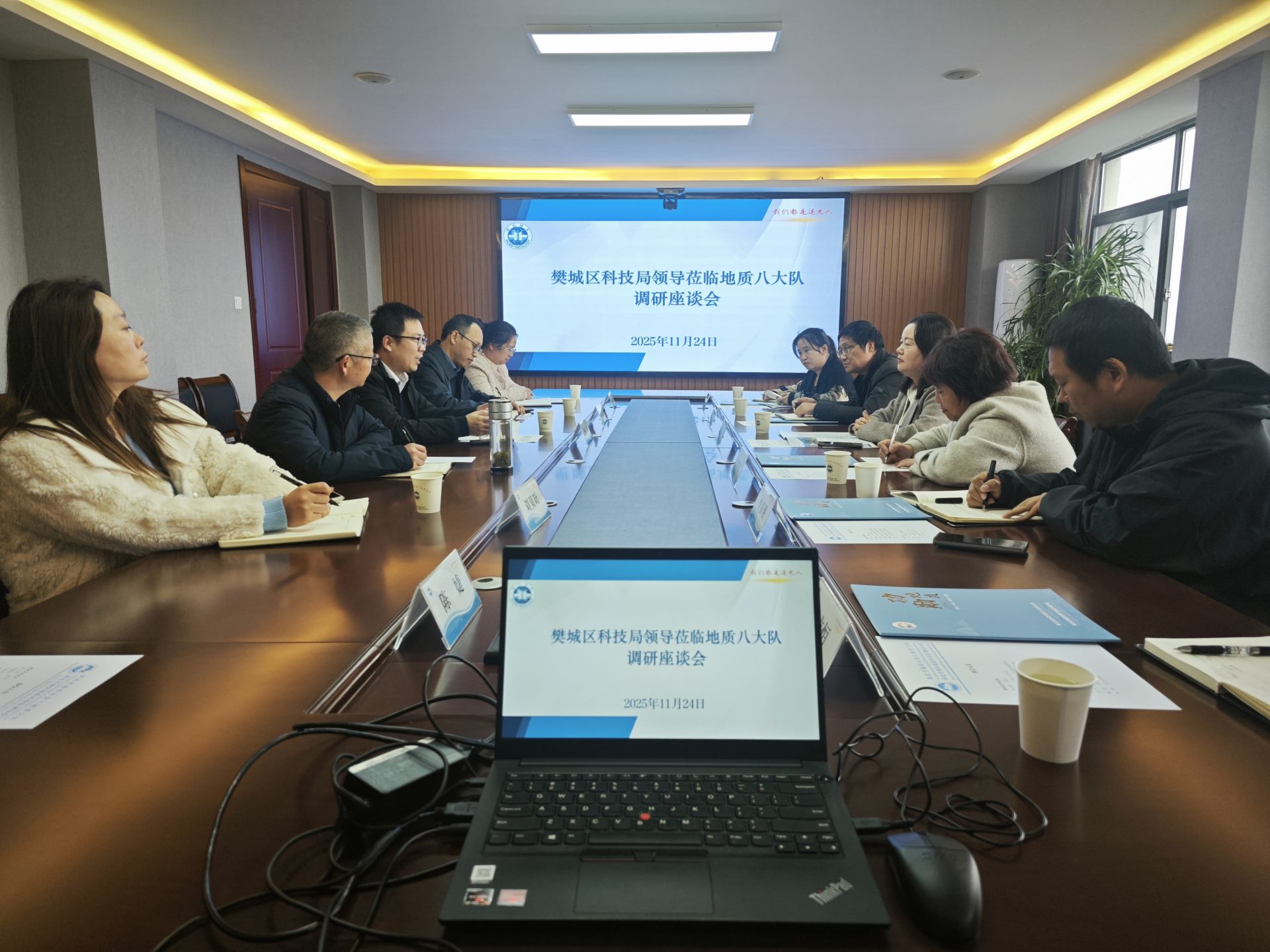 在听取地质八大队的工作汇报后,樊城区科技局和王寨办事处负责人均高度赞扬了八大队持续深耕地质领域、服务地方发展的精神,并表示后续将进一步加强与八大队在科技服务领域的协作关系。随后,樊城区科技局业务科室结合八大队科研现状,系统解读了适用的科技创新扶持政策,重点谋划对接“十五五”规划重大项目。双方明确将在以下方面展开合作:一是推动八大队重大勘探项目纳入樊城区“十五五”科技创新类重大项目库;二是协同开展科研成果奖项申报工作,强化科技成果的宣传推广;三是共同依托单位资源构建科技创新平台,重点指导市级重点实验室的申报,为樊城区科技创新工作提供新支撑。