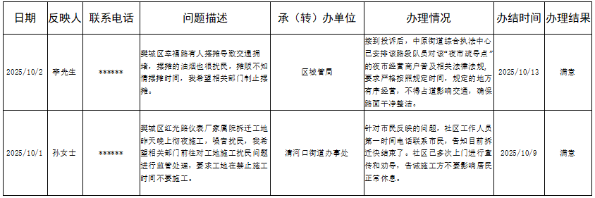 樊城区10-12月受理群众有关城市精神文明建设意见建议办理情况公示
