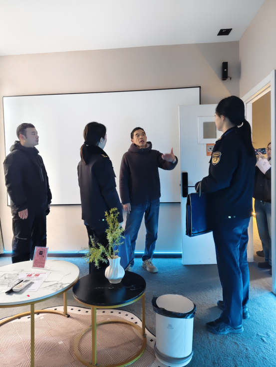 此次检查聚焦群众关切与安全底线,先后前往欧秀国际影城、摩尔国际影城等场所,重点核查消防通道畅通情况及消防设施配备状态,确保各类安全保障措施落实到位,同时现场协调影院落实未成年人优惠观影政策,切实保障未成年人文化消费权益。在悦时光私人影院,细致查看消防指示标志设置合理性,详细询问日常经营流程,强调点播影院需坚守合法合规经营底线,杜绝违规播放、接纳未成年人等行为。