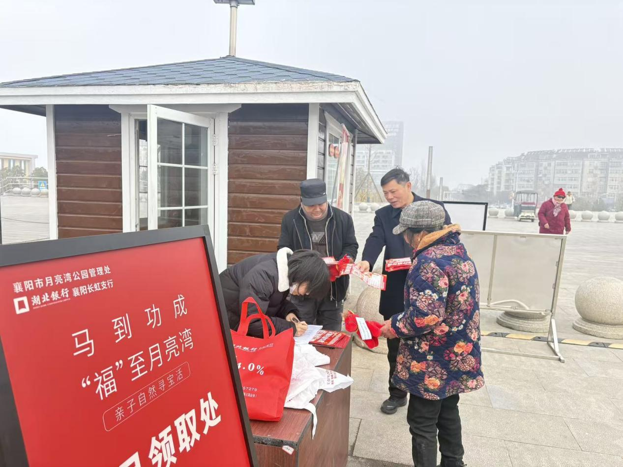本网讯(通讯员 彭雪晨)小年启祥,福暖湾畔。月亮湾公园联合湖北银行开展的“马到功成,福至月亮湾”亲子寻宝活动圆满落幕。