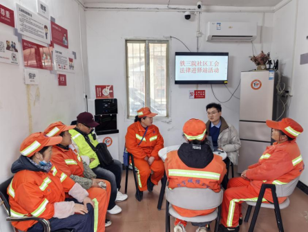 三顾律师事务所郑宇飞律师走进铁三院工会户外职工爱心驿站,开启“现场说法”活动。面对环卫工人群体,他着重阐述了劳动权益保护的相关知识,还特别提醒大家在工作中要注意保留工作记录、考勤表等证据,以便今后能够有力维权,让环卫工人们做到心中有法、遇事找法。