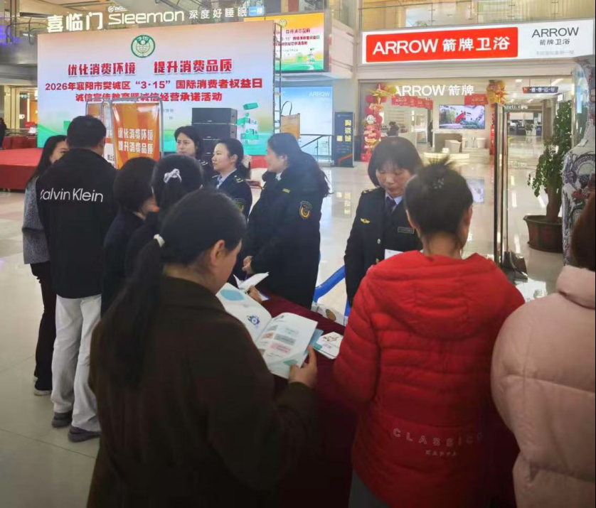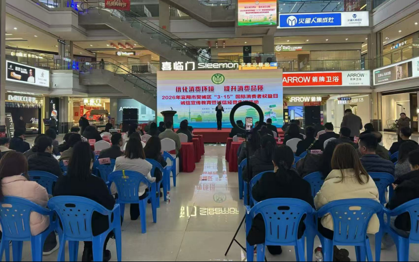 本网讯(通讯员 张佩佩)3月14日上午,樊城区市场监督管理局2026年“3·15”国际消费者权益日宣传活动在天丽家居广场隆重举行。本次活动以“提升消费品质”为主题,由区市场监督管理局主办,区直相关单位、放心消费企业代表、卧龙律师事务所、商户代表以及广大居民朋友共同参与,旨在优化消费环境,激发市场活力,守护群众美好生活。