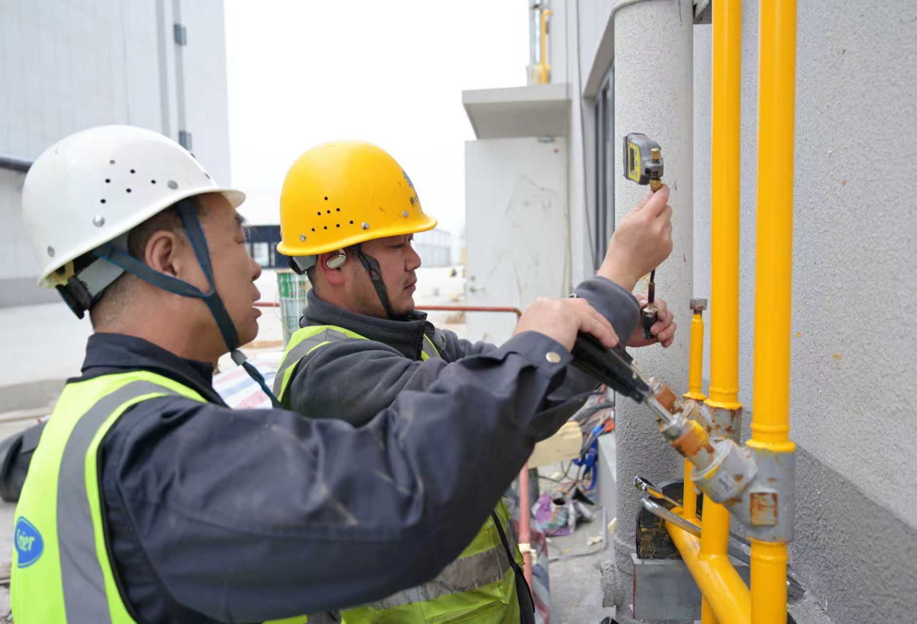 玉湖冷链(襄阳)交易中心工程师正在调试制冷设备