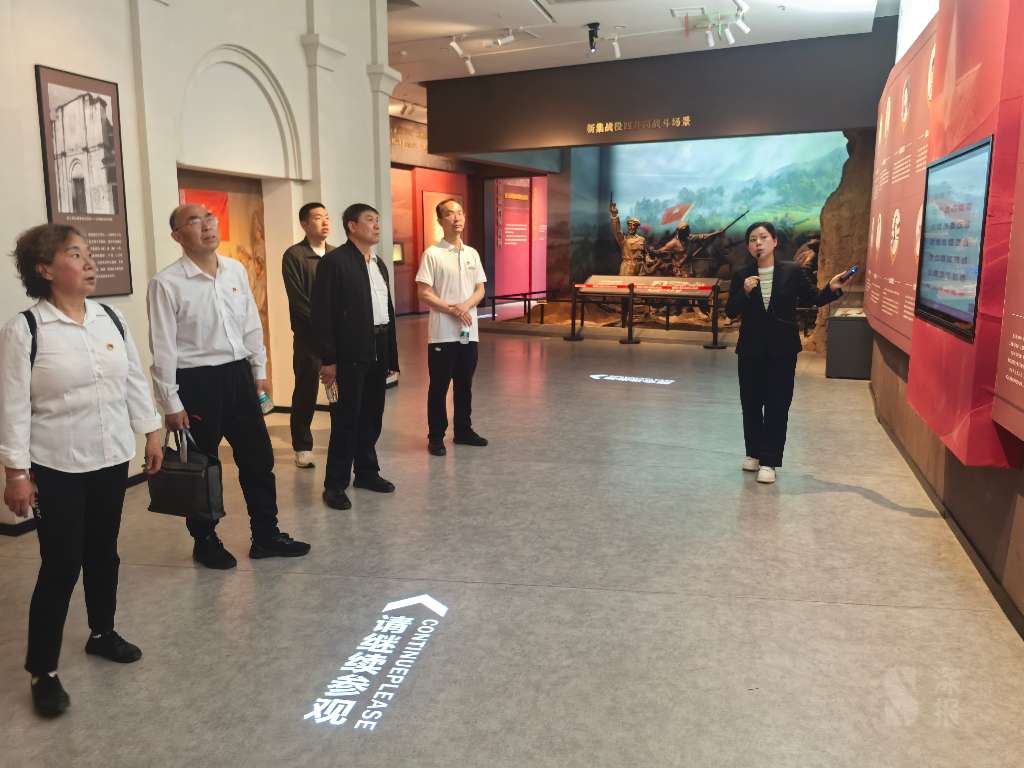 活动期间,党员干部在纪念馆讲解员的引导下,仔细参观了馆内成列,纪念馆一层设有襄阳(襄樊)战役史迹成列展厅,二层为“红色之星照耀襄阳” 主题展厅,重点展示在襄阳革命和建设历程中献出生命的78位革命烈士代表人物的事迹。纪念馆部展面积达1500平方米,展览以时间为轴线,通过历史照片、革命文物、文献资料、雕塑及多媒体影像,全面展示了襄阳地区在党的领导下,经历大革命、土地革命、抗日战争、解放战争、革命建设等各个时期英勇斗争史。通过互动投影、声光电等数字技术还原的激烈战斗场景,生动再现了革命先烈们前赴后继、英勇顽强的光辉形象。