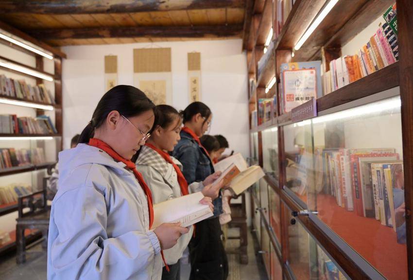 活动结束后,全体人员一同参观了乡村书屋。同学们站在书架前专注阅读,沉浸在文字的世界里,构成了一幅动人的乡村阅读画卷。