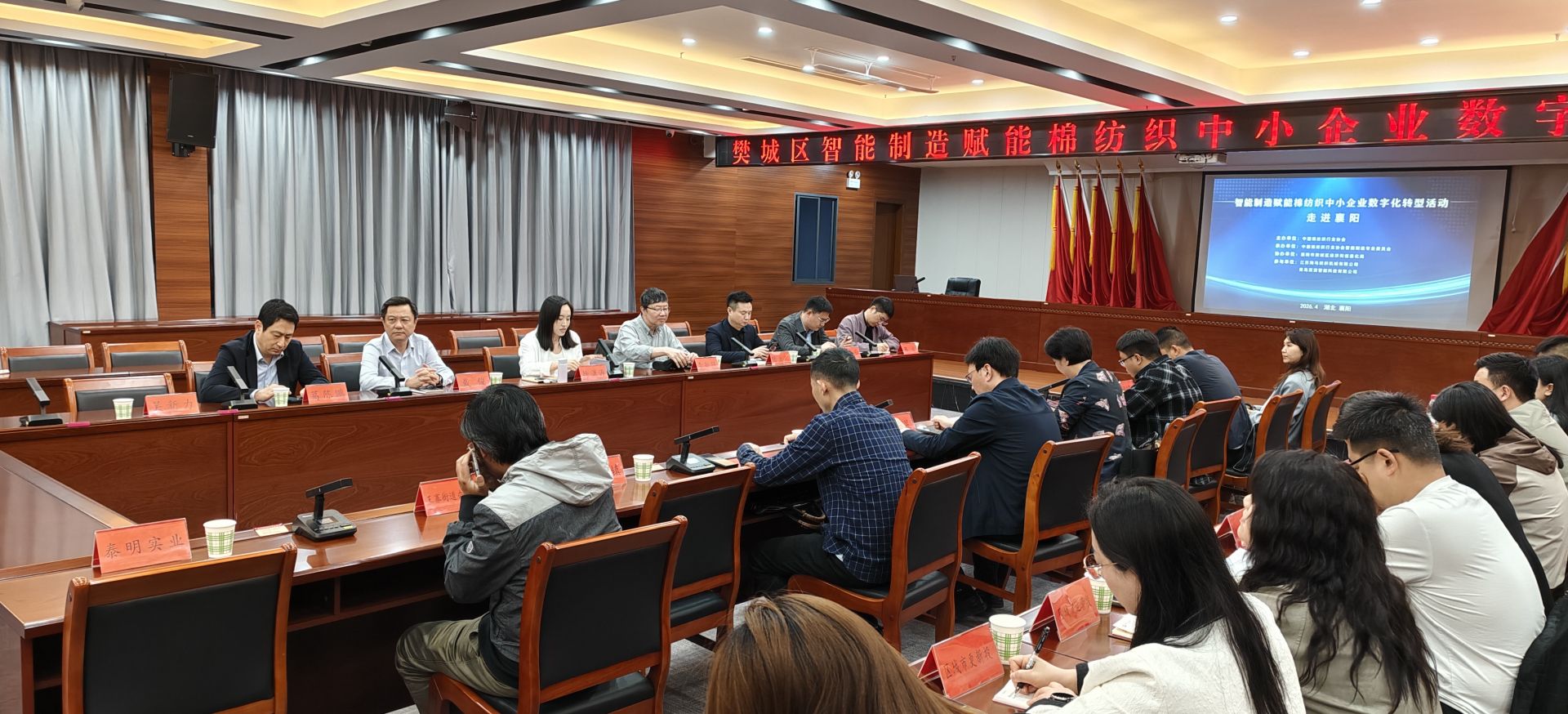 本网讯(通讯员 卓以双)4月28日,“智能制造赋能棉纺织中小企业数字化转型活动”走进樊城。本次活动由中国棉纺织行业协会主办,樊城区经济和信息化局协办。中国棉纺织行业协会副秘书长徐潇源主持座谈交流培训会议,樊城区委常委、政府副区长赵昱出席并致辞,樊城区相关单位、属地镇(街)及50余家重点企业参加会议。