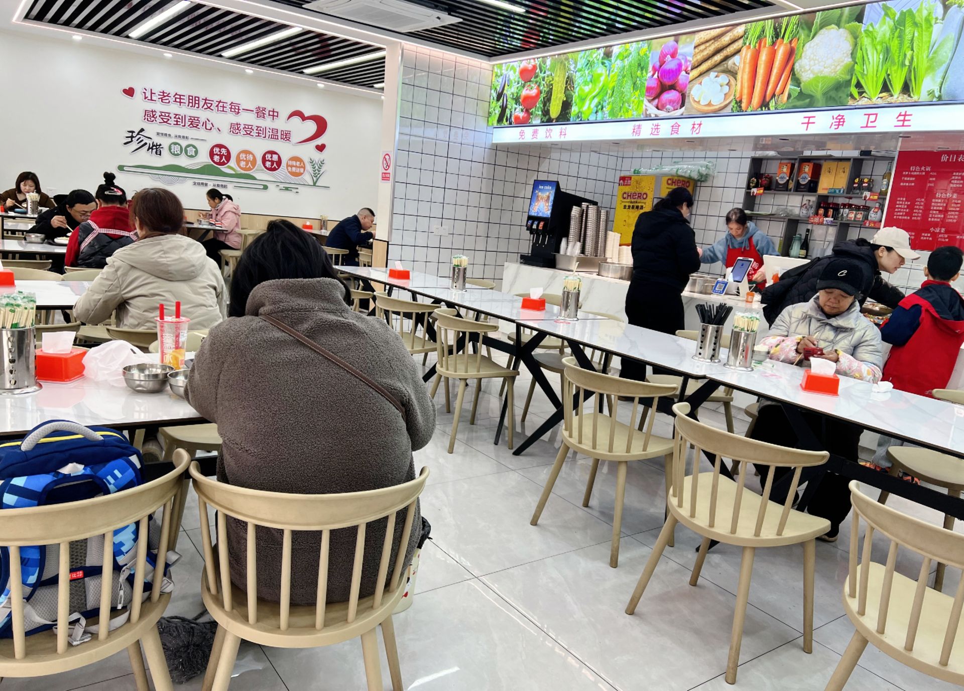 “去年7月,我们积极行动,清理出临街门面,通过招投标流程,寻找到了合适的餐饮合作伙伴,打造出一个约100平方米的幸福食堂。食堂内取餐区、就餐区、洗碗区功能分明,现代化厨房设备一应俱全,餐具消毒设施严格保障饮食卫生,这里不仅是老人用餐的地方,还是一个集餐饮、休闲、交流于一体的温馨空间。”董家台社区党委书记唐玉敏介绍。