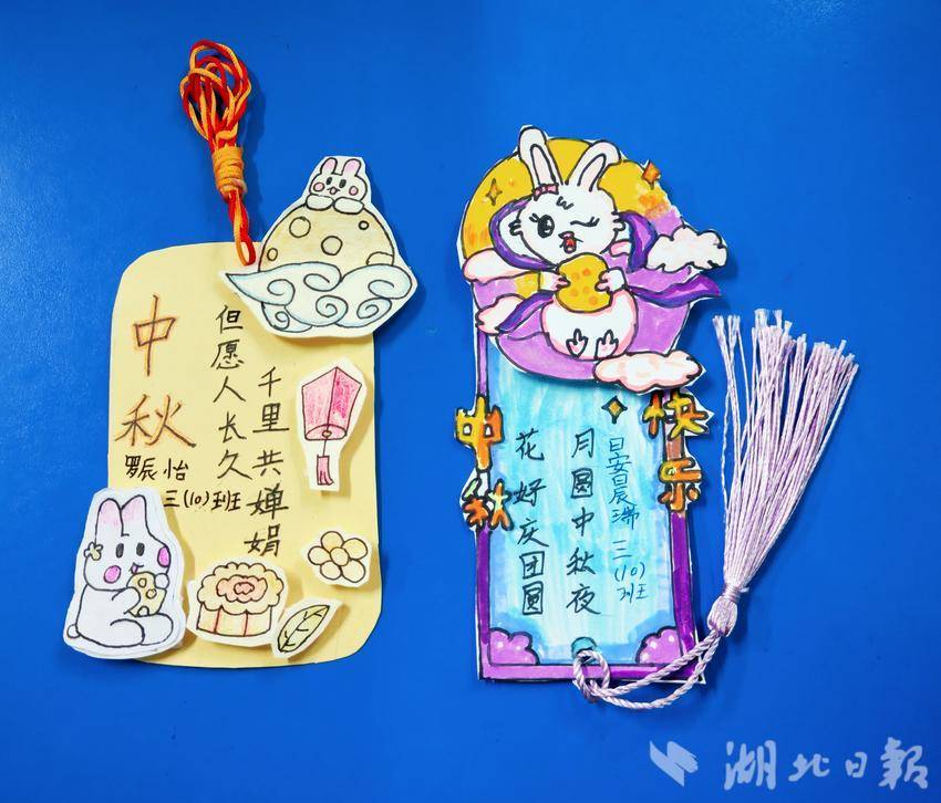 围绕中秋文化主题,三年级学生展开想象的翅膀,设计制作出各式各样的、充满童趣的书签。玉兔、明月、月饼等传统元素在他们的画笔下焕发新意,展现出非凡的动手能力与艺术创造力。