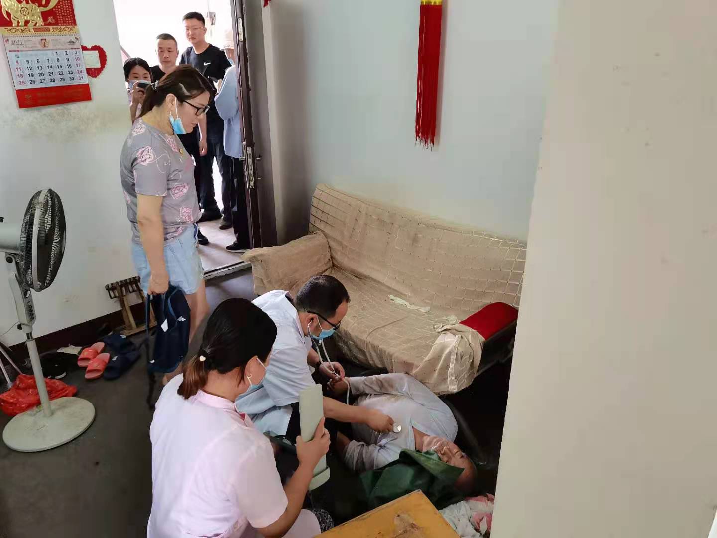 本网讯 (通讯员 龚端)7月9日上午,水云间社区接到居民电话反映,下楼时发现水云间独居老人陈大叔家大门敞开,人倒在地。听到这一消息,社区党委书记曾禹立即安排网格员杜齐林报警并拨打120,和物业一起联系子女。曾禹同社区副主任陈辉、社区两委张琦、春园卫生中心医护人员赶往陈大叔家中。