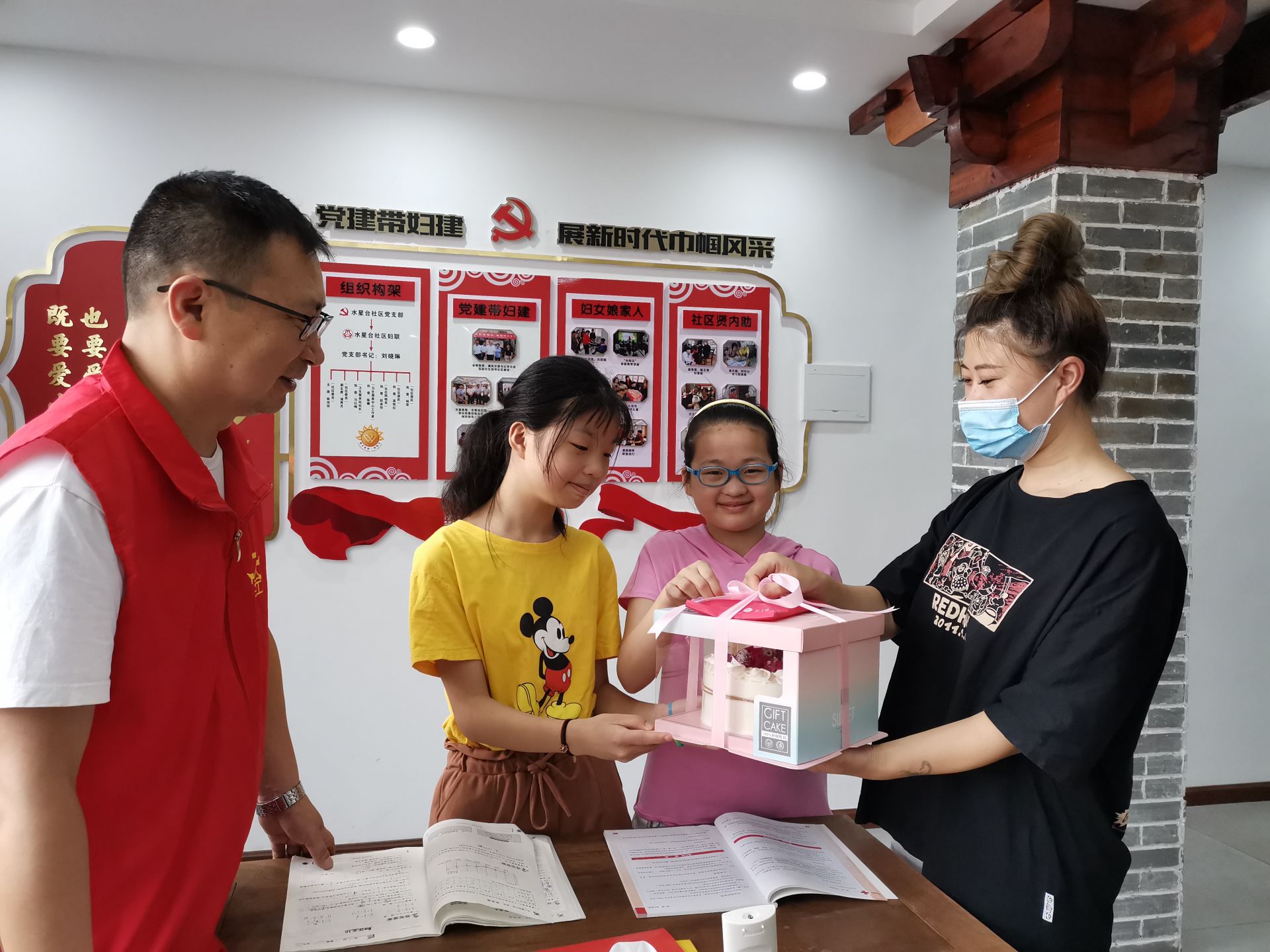 本网讯(通讯员 柏向华 刘松霖)7月14日上午,在社区经营蛋糕店的周女士来到水星台社区暑期多彩课堂为乐于助人的姐弟俩杨梓悦、杨宗岳送上亲手做的蛋糕,希望通过这种方式来表达自己的感谢之情。