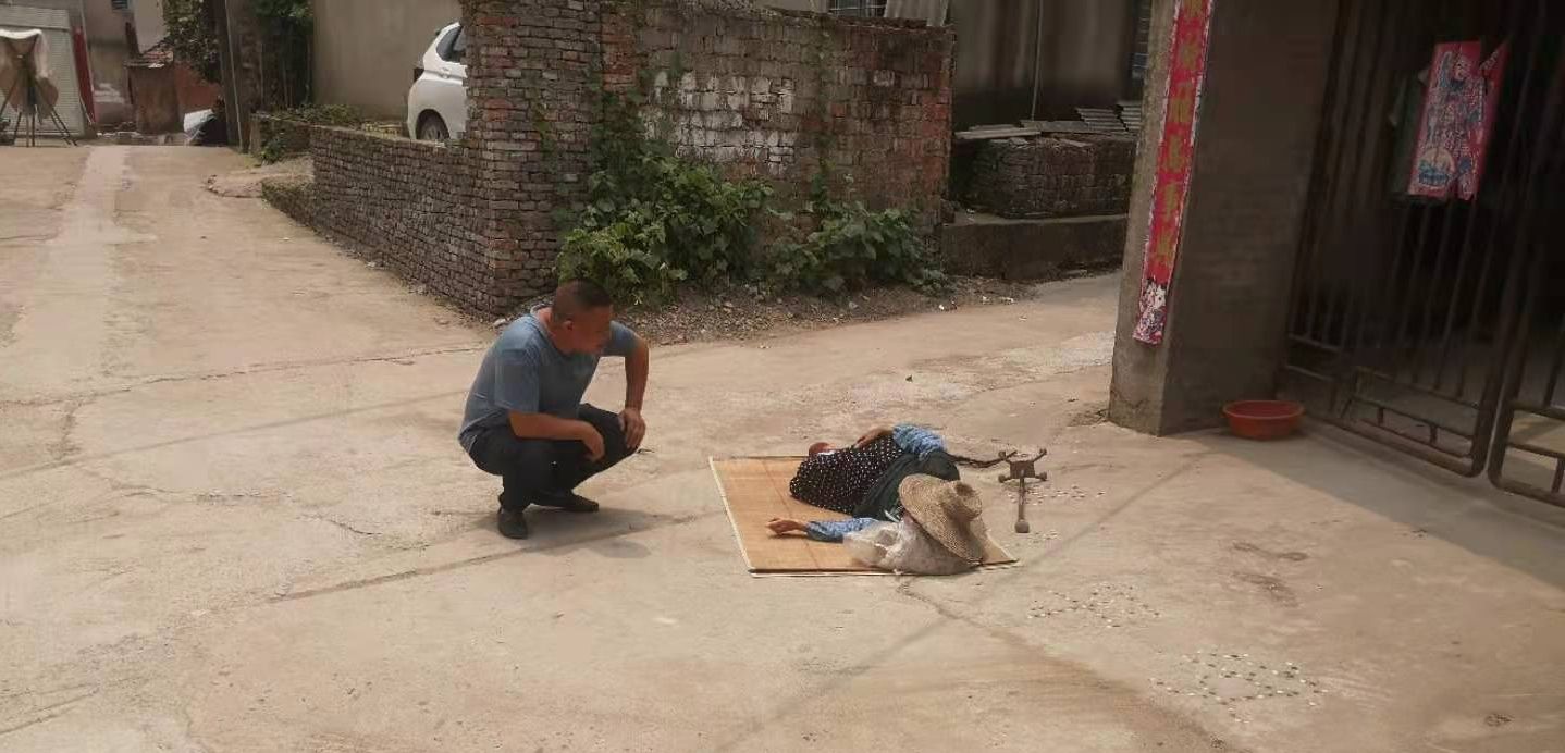 经了解,老人腿部患有风湿,近日来雨水较多,湿气大,导致腿部疼痛难忍。老人听说伏天顶着太阳晒能治好风湿病,便做出此举,此时已被晒得有些头晕。杨迎春赶忙把老人扶进屋内,告知老人暴晒可能导致中暑,引起身体更大的不适。随后,杨迎春叫来了老人的儿子,劝导其带母亲去医院治疗,避免危险发生。
