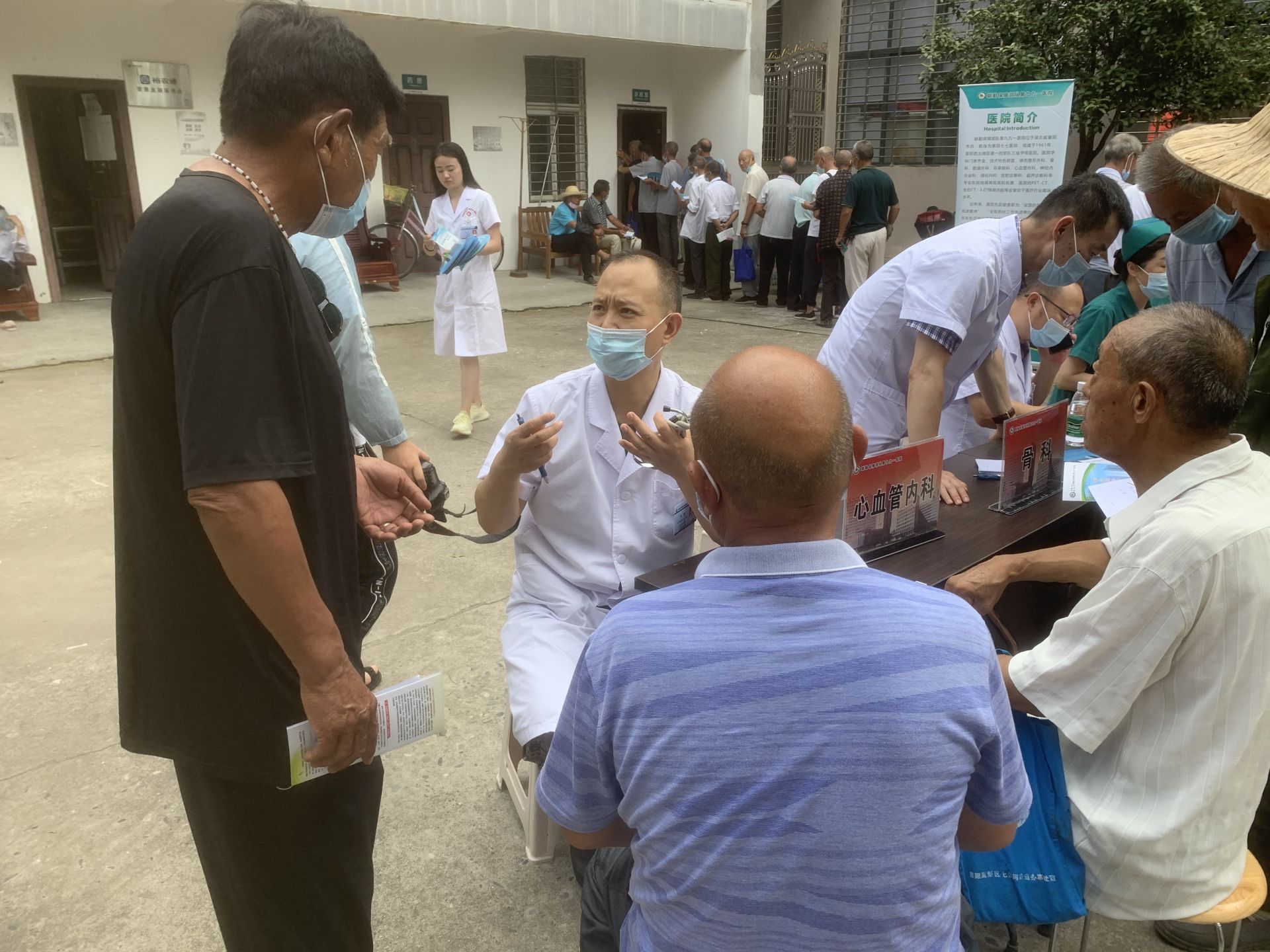 来自九九一医院心血管内科、神经内科、骨科等科室的13名专家对牛首镇村民进行现场义诊。义诊包括B超、心电图、测量血压、血糖等检查,专家们通过检查结果为居民们提供有针对性的建议,并对居民进行应急救护培训,以亲切的服务态度和优良的服务质量受到村民的交口称赞。