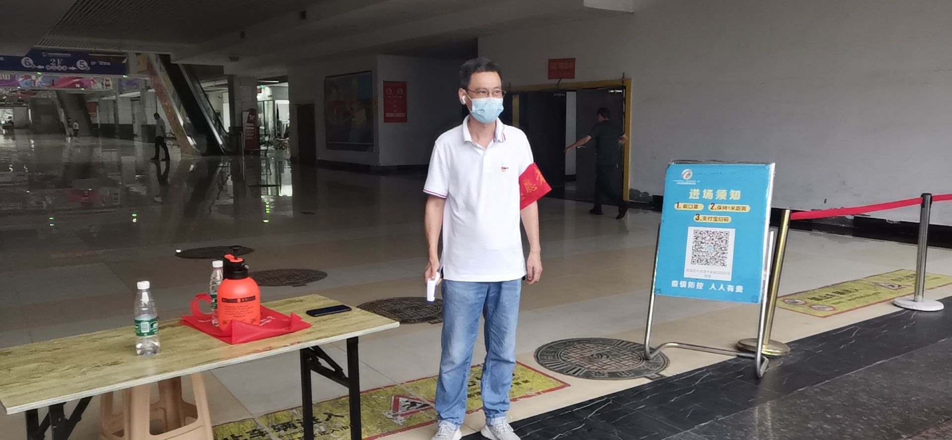 本网讯(通讯员 罗红奎)为严格落实人员密集场所的疫情防控要求,8月5日起,中豪国际商贸城关闭市场小通道,党员在预留的安全通道门进行防疫值班。