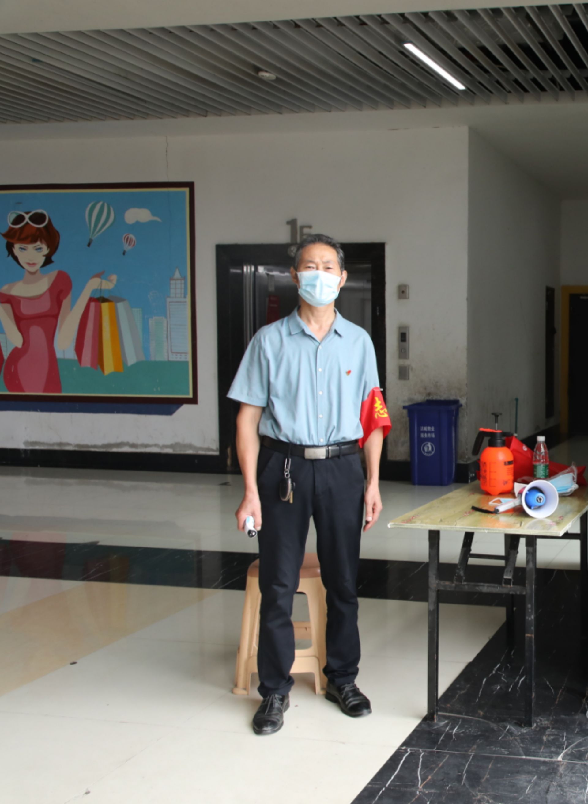 近期,疫情防控形势收紧,蒯家兴积极地向中豪国际商贸城党总支报道,参与商场疫情防控值守工作,冲在了防疫第一线。扫码、测温、消毒,他的动作标准又利索,潮湿闷热的天气中,他微微佝偻的后背常常泛湿。