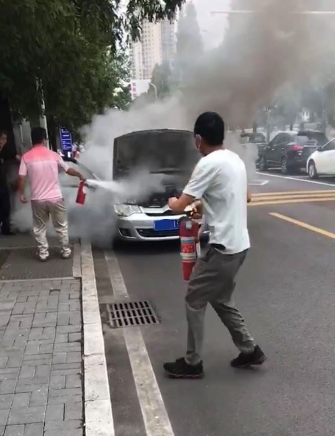 本网讯(通讯员 董念)8月23日上午,乔营社区专职副书记乔千新在包保片区开展疫情防控宣传工作时,发现路边有一辆银色轿车突然冒烟,起了明火。小车司机手足无措,乔千新立刻跑回车上拿起自己的车载灭火器,冲向着火车辆。为了周边居民的安全,他一边飞奔,一边呼喊着让大家快躲远些。火势越来越大,路过的司机们纷纷加入到灭火队伍中。经过大家的努力,火势逐渐熄灭,没有造成人员伤亡,路过的居民纷纷为“救火队”点赞!