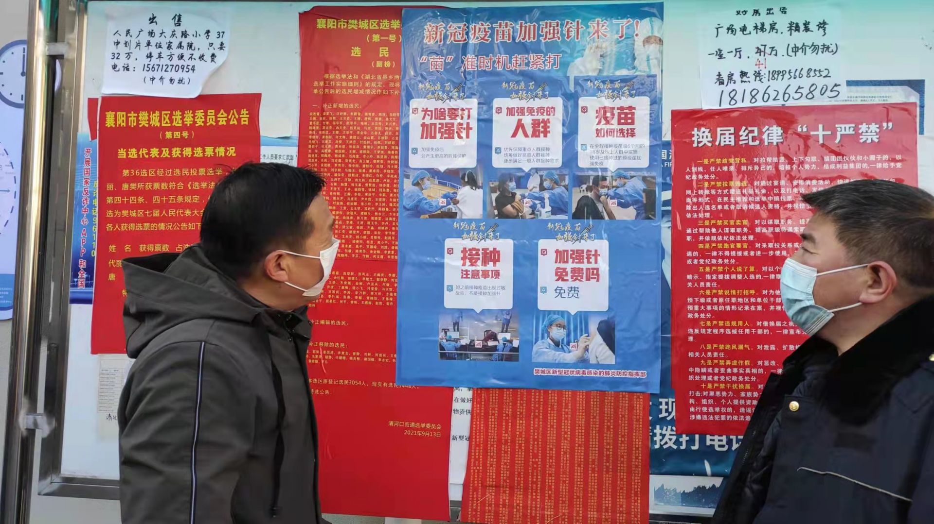 本网讯(通讯员 张红泳)为全面落实新冠疫苗加强针接种工作,11月8日,清河口办事处王家台社区新时代文明实践站继续在辖区开展疫苗加强针宣传活动,在社区21个居民小区、辖区单位、宣传栏醒目位置张贴加强针宣传海报,不少路过的居民都驻足观看。