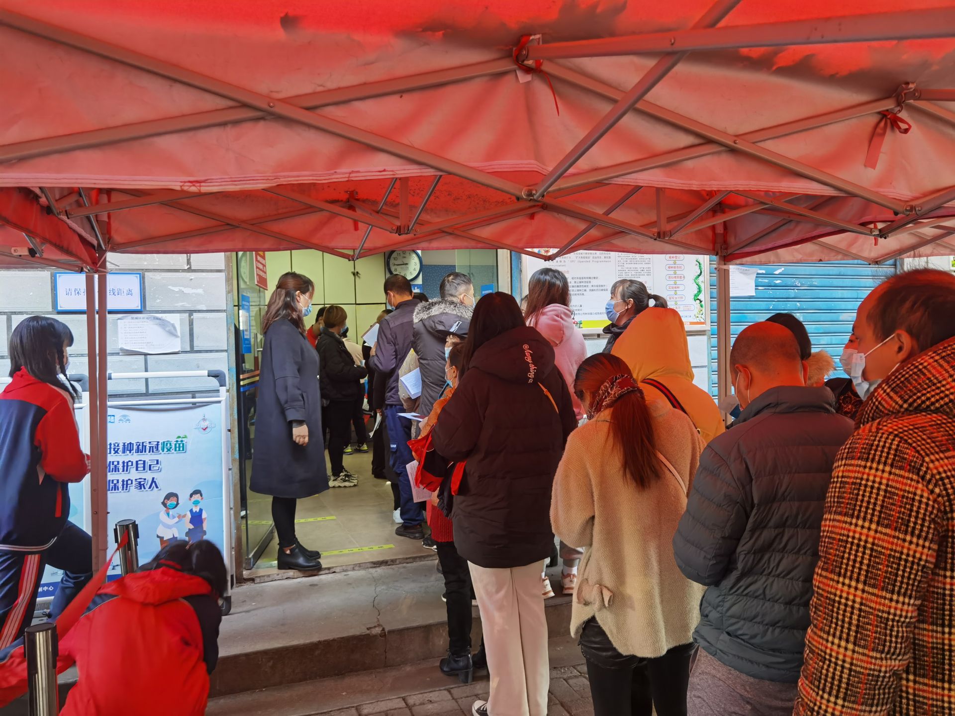 在防疫中心门口,社区工作人员佩戴红袖标,身穿红色马甲,维持接种疫苗人群队伍,杜绝出现插队、喧哗,排错队等现象。在社区工作人员的努力下,现场队伍井然有序,长虹路小学的学生接种的速度更快,效率更高,保障了学生的健康安全,共同筑牢防疫“安全墙”。