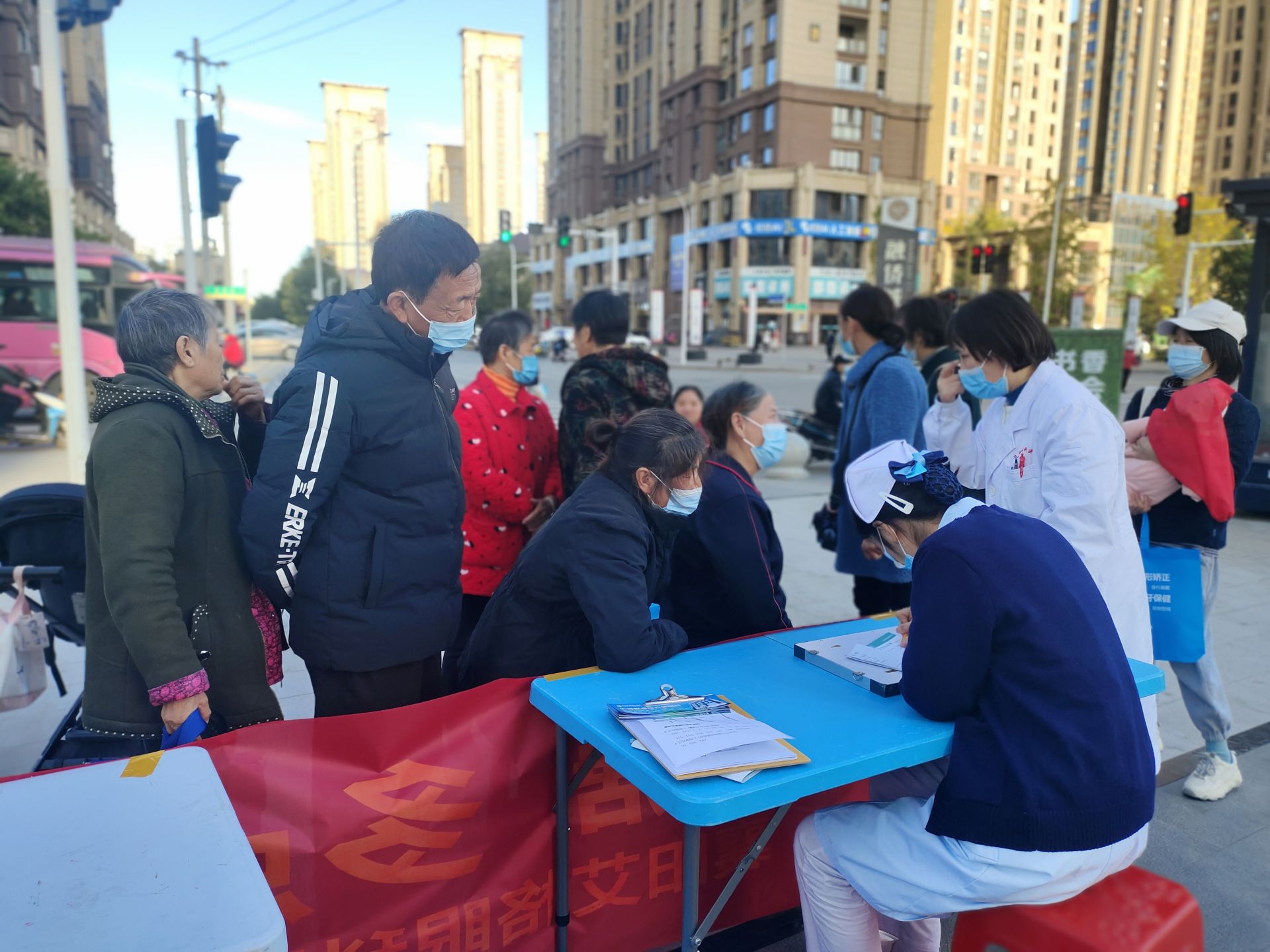 义诊活动现场,来自艾格眼科、号尔口腔医院的志愿者为居民免费测视力、检查白内障青光眼、口腔内窥镜、牙周疾病、缺失牙筛查等常见眼病、牙齿问题。同时向居民宣传、科普眼睛及口腔健康知识,教授居民练习八段锦,受到居民的热烈欢迎。