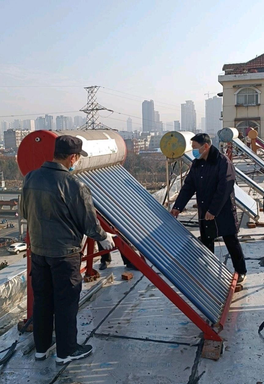 12月30日,军立为物业出资1000余元购买软管,社区志愿者和物业人员对接好居民,将605栋住户的房顶太阳能进行软管加长并移至靠中央的安全地带,截止到12月31日下午,该栋楼的36个太阳能已全部整改安装到位,消除了安全隐患,得到了小区居民的纷纷点赞。