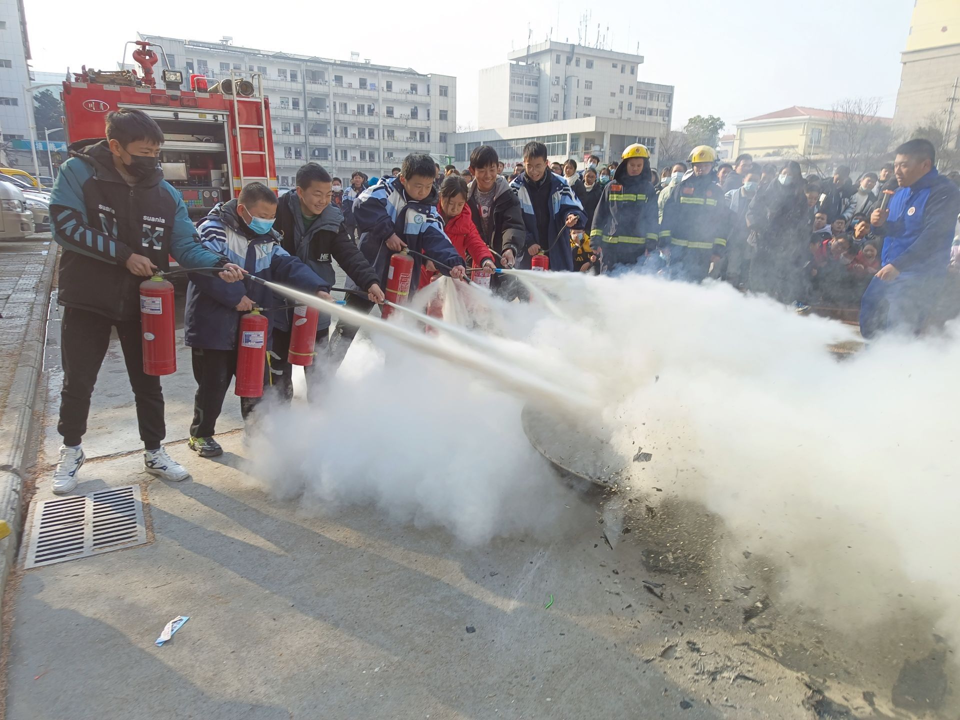消防人员首先为师生们普及了灭火器的种类、使用方法和常见火灾的扑救方法。随后,消防人员又向师生讲授了报警、防火、灭火以及逃生的自救常识,现场演练使用消防水枪灭火,并手把手教师生们使用灭火器,大家积极体验,利用灭火器扑灭火苗。