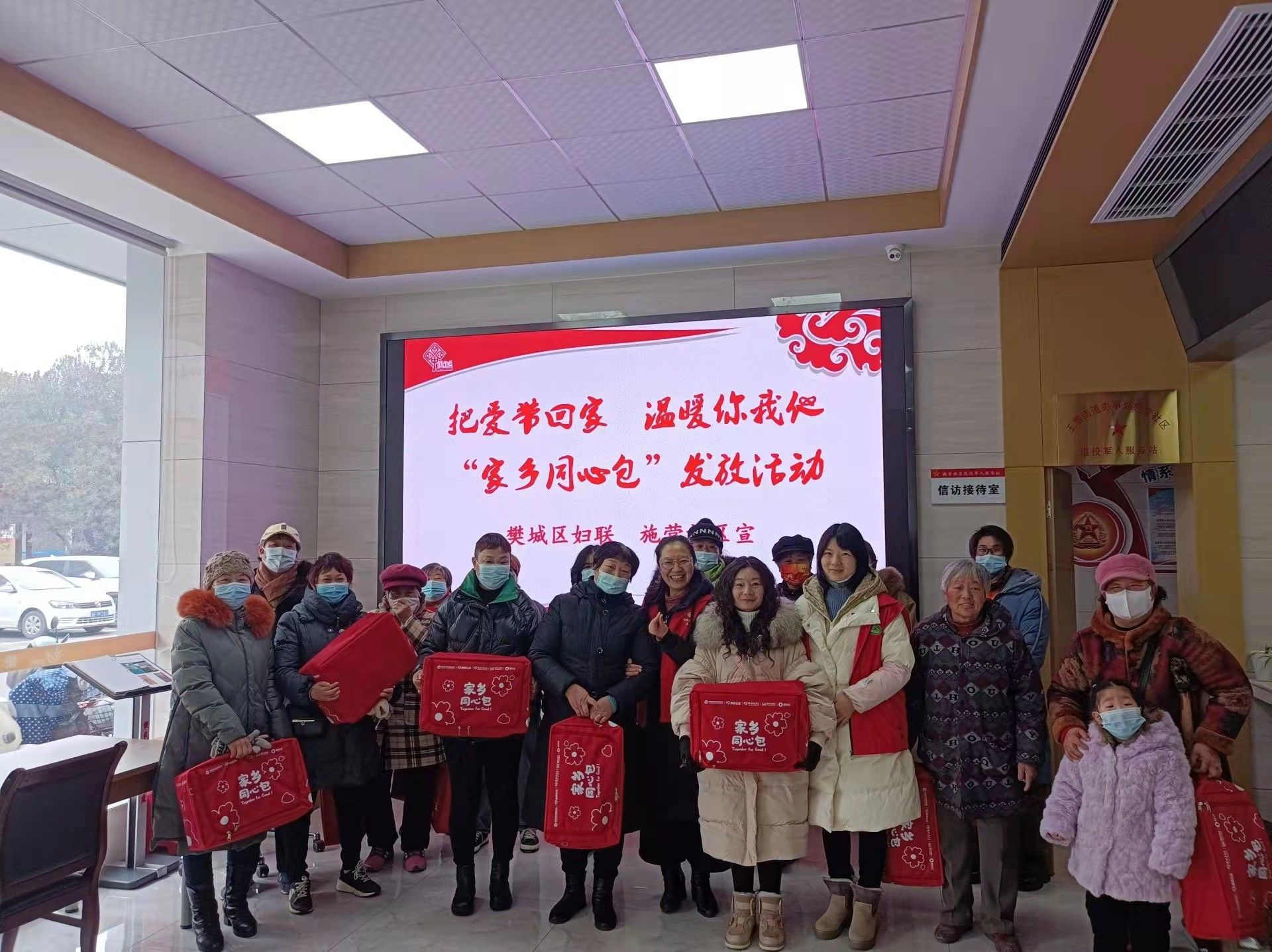 本网讯(通讯员 郭文娟)1月7日下午,樊城施营社区联合区妇联举办“把爱带回家 温暖你我他——家乡同心包”爱心包裹发放活动。活动现场,社区工作人员为社区20个困难家庭送上冬天的温暖的关怀与祝福,并提醒大家注意冬季防火,用气用电安全,最后再次强调大家疫情未尚结束,请大家提高警惕做好疫情防控。