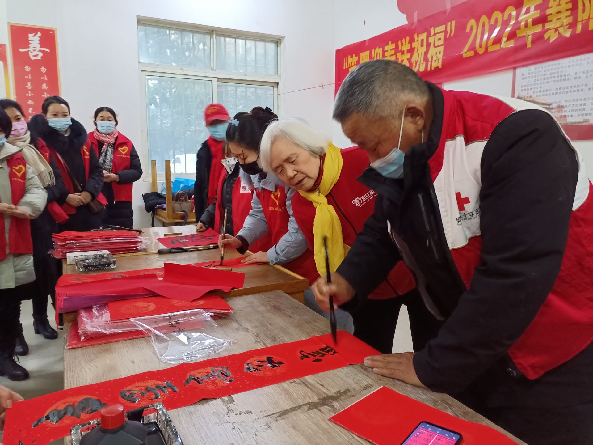 活动在建昌社区汉江韵健身队激情演绎的欢乐腰鼓中拉开了帷幕,书法志愿者们铺开红纸,笔蘸浓墨,凝神聚气,写下了一个个苍劲有力、潇洒自如的“福”字和一副副流畅秀丽、充满希望与幸福的春联,志愿者们把写好的春联和“福”字摆放整齐,一一赠送给居民们。虽然窗外雪花飘飘,寒气袭人,但活动现场暖意融融,志愿者和居民们热情不减。
