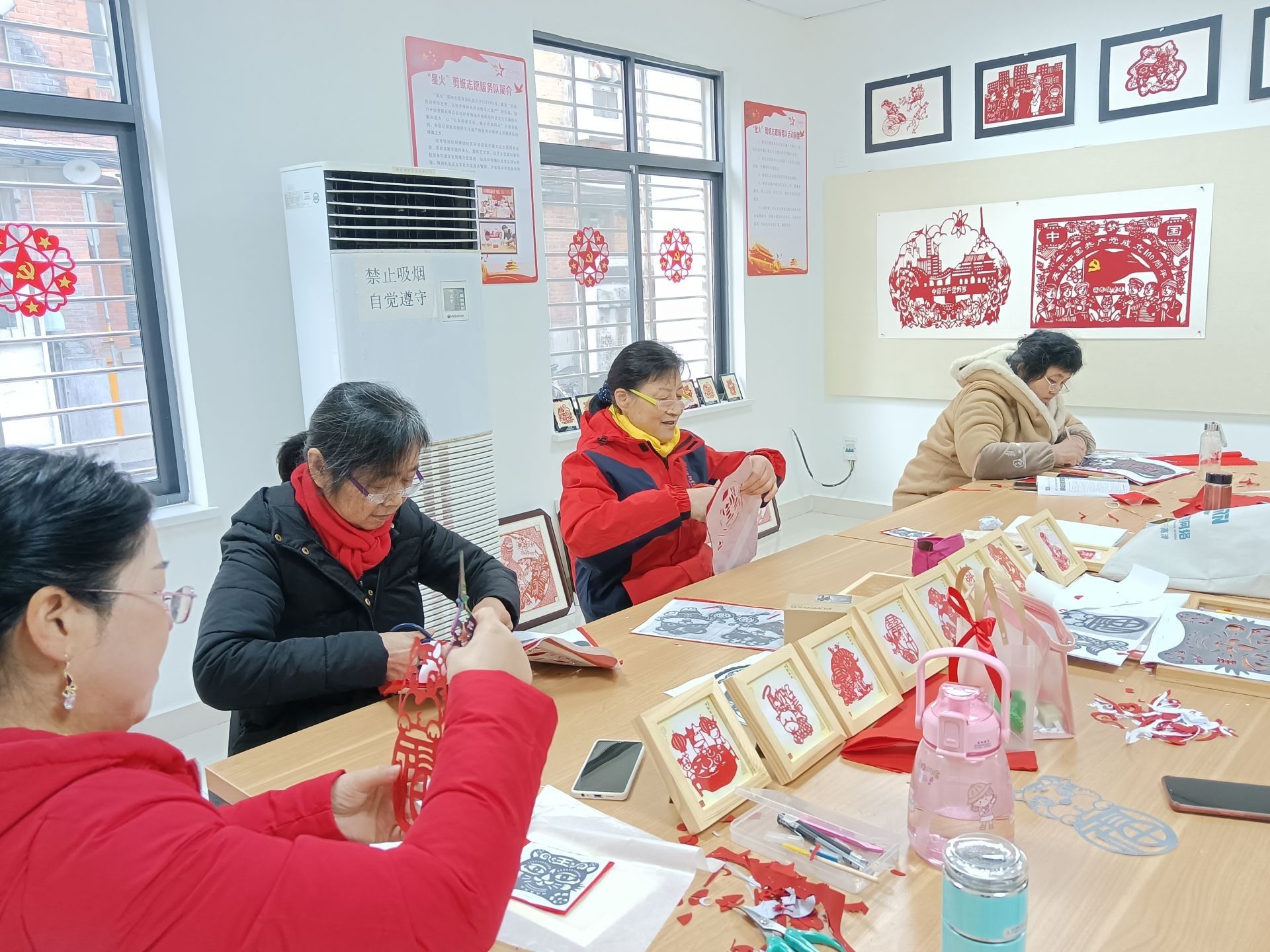 星火路社区剪纸志愿者、居民纷纷来到社区红色驿站,参加迎新年活动,大家现场剪窗花,为即将到来的新春节日营造浓厚的氛围。