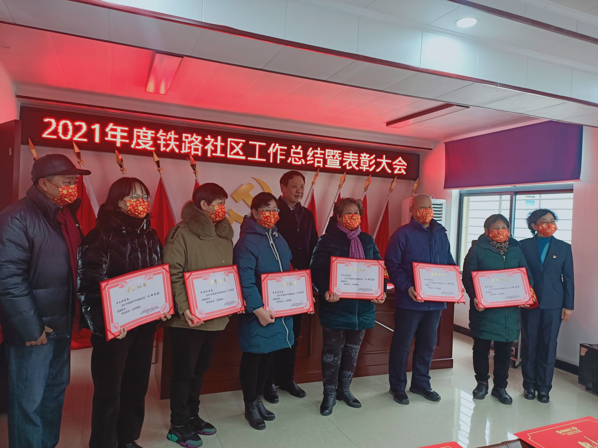 1月25日下午,铁路社区组织辖区党员居民召开2021年度铁路社区工作总结暨表彰大会,辖区19个党支部书记和业委会主任及受表彰的志愿者60余人参加活动。