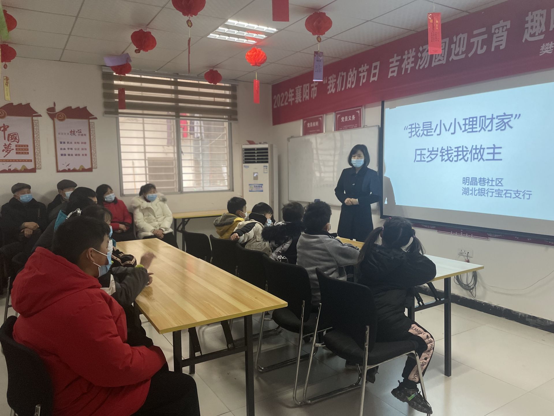 本网讯(通讯员 易晓琴)为引导青少年树立正确的金钱观和消费观,合理规划压岁钱,2月15日上午,樊城区明晶巷社区与湖北银行红光路宝石支行联合开展了“我是小小理财家”财商主题亲子活动。