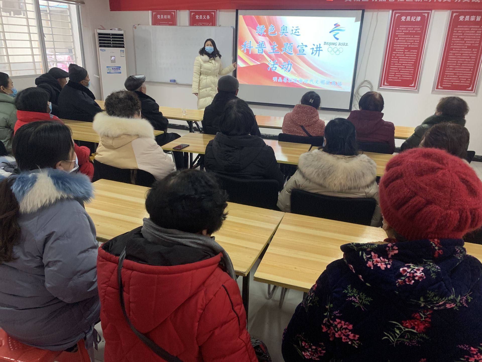 “这么大的场馆,如何才能用更环保的方式维持运营呢?”在宣讲中,宣讲员用通俗易懂的语言和PPT演示的方式,向居民群众介绍了2022年北京冬季奥运会的口号、会徽、吉祥物、比赛项目等知识,重点讲解了绿色办奥运的理念。宣讲员向居民群众科普了二氧化碳制冰、绿色清洁电使用等技术,特别是本届冬奥会从场馆建设到基础设施打造,从媒体转播到人工智能、5G等前沿技术应用,从智慧服务到绿色环保材料选择,都以最新科技为支撑,展示了我国环保“黑科技”为盛会带来的变化。宣讲结束后,居民群众纷纷表示受益匪浅,对绿色奥运有了更直观的了解和认识。