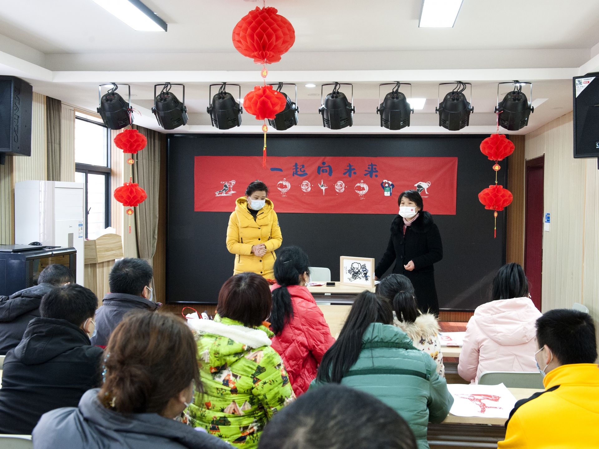 在剪纸老师和党员志愿者的指导下,一把剪刀,几张彩纸,纸随剪转,栩栩如生的冰雪运动形象便跃然纸上。