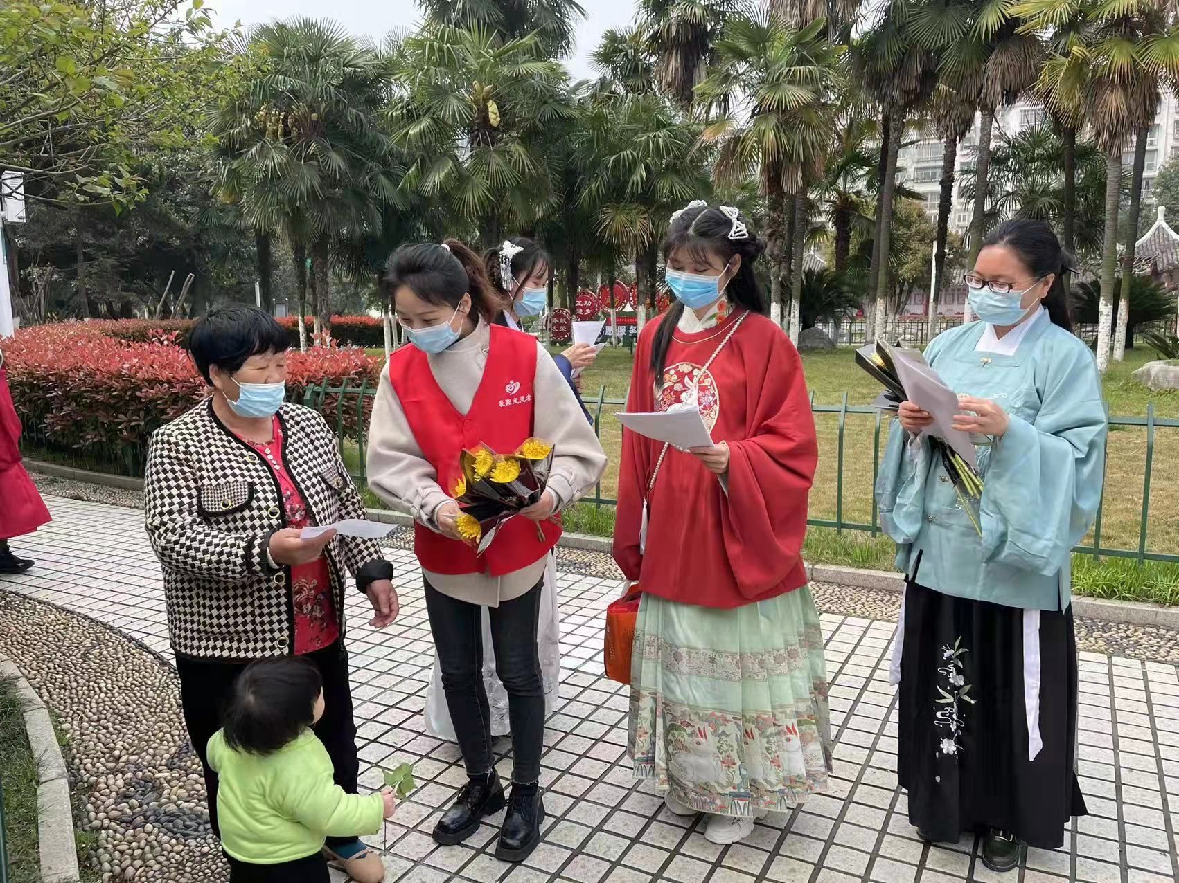 当天,樊城定中街社区联合襄阳九州汉服社开展“移风易俗树新风,绿色祭祀传哀思”活动,通过发放倡议书、赠送菊花、手写寄语卡等形式,号召大家清明期间不扎堆、不聚集、不焚香烧纸,摒弃不文明的祭祀陋习,积极营造文明祭祀的良好社会氛围。