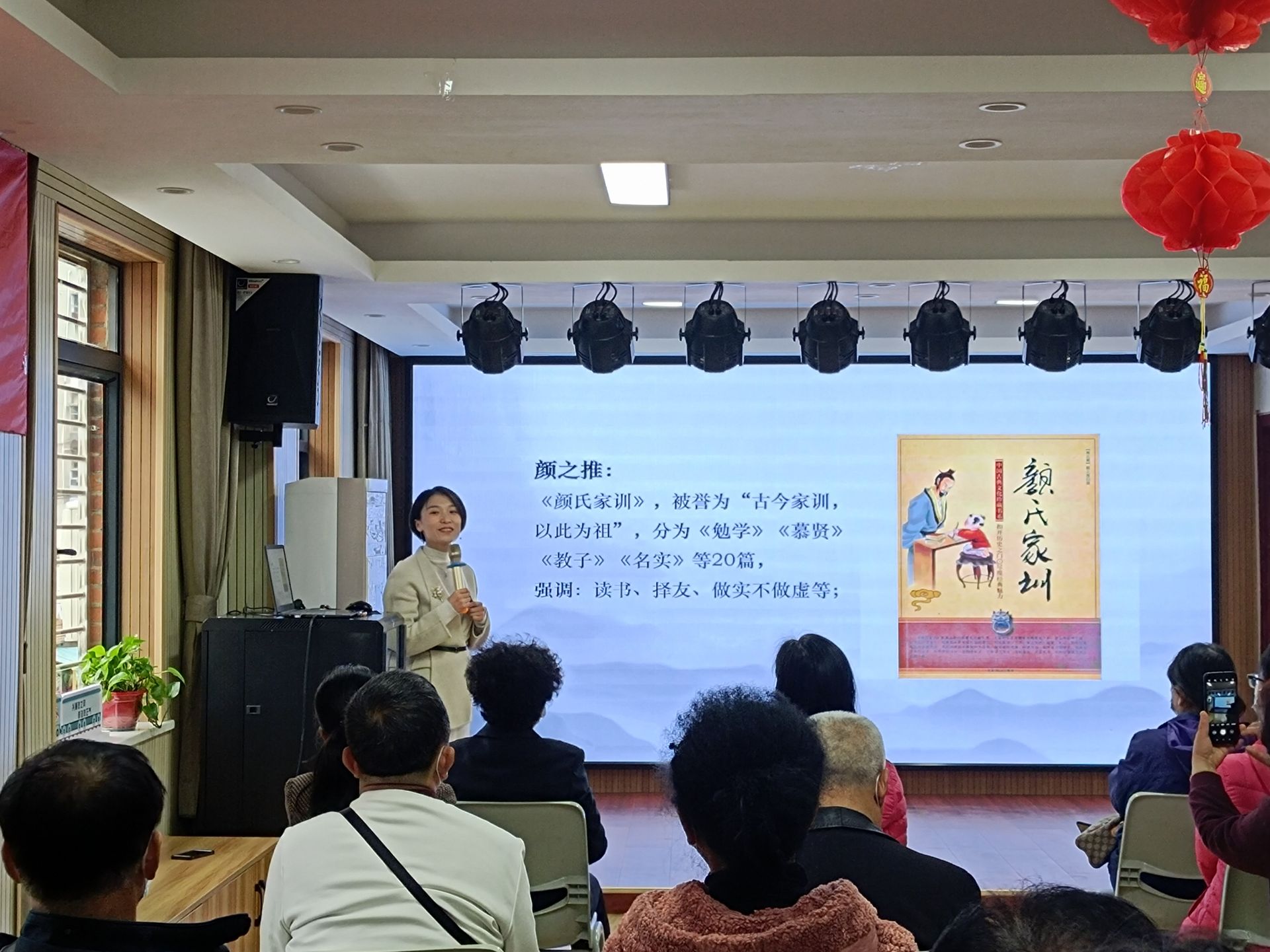 此次讲座特邀高级家庭教育指导老师杨洋进行宣讲,从家风是什么、家风与家族命运的关系、怎样传承好家风、建设好家庭、正家风促党风几个部分,结合自身的成长经历及现实生活中的真实案例,用通俗易懂的语言诠释了家风、家训、家规的涵义。杨洋指出,家风是祖辈言行心性的结果,是一种精神气质;家训是对后人的训示;家规是实现家风的规条,并以曾国藩“治家八字诀”、钱氏家训、王阳明家训等名门望族的家风为例,引用古今名人关于家风的名言警句,引导广大群众在日常生活和工作中要不忘正家风、促党风。
