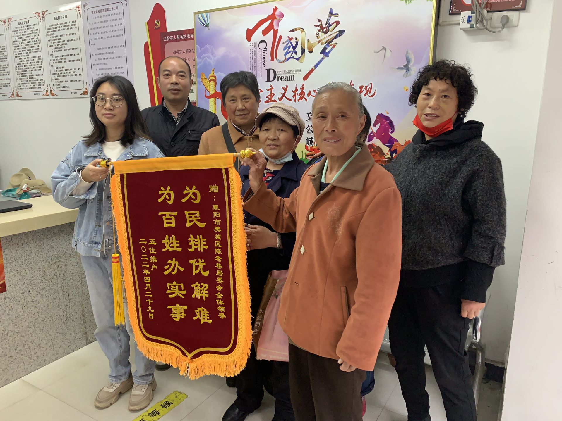 本网讯(通讯员 贾跃萍)4月28日,陈老巷社区居委会收到了一份特殊的“五一劳动节礼物”。一大早,来自清河片区滨江二期征收项目的5户流动摊户们将一面印有“为民排忧解难 为百姓办实事”的锦旗送到了社区办公室,表达他们对社区的感激之情。