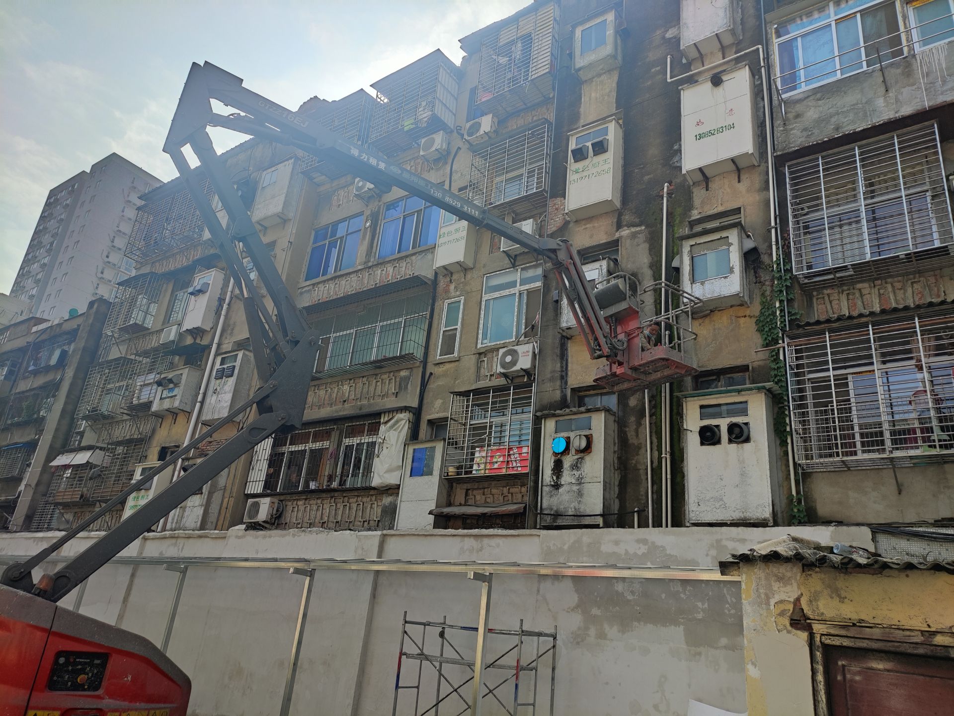 虽说事情难度很大,但是居民的问题得不到解决一直是社区党委放在心头的大事,在社区小矛盾小纠纷研判会上,社区党委梁书记提出,既然从楼顶吊绳索下来修代价太大,那能不能找辆登高车进行地面作业,这样费用小了,安全系数也高了。这个建议提出后,我们迅速联系了在周边小区进行改造施工的登高车,而后又联系了水电工师傅。