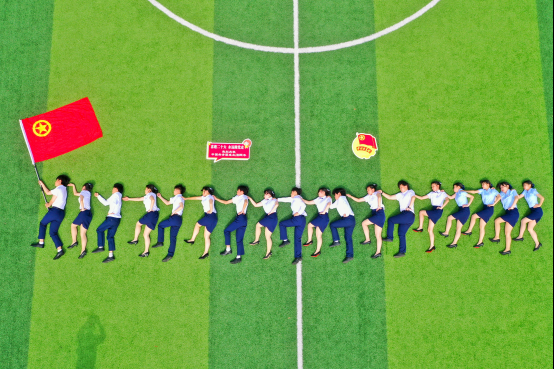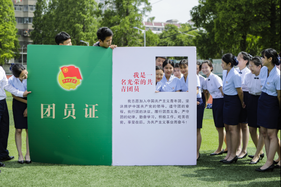 蓝天伴绿树,红旗映笑脸,湖北省襄阳市樊城区职业技术教育中心学校的青春学子们,在美丽校园内留存与团旗(团徽)的各种创意合照,成为这个青年节一道道生动风景。