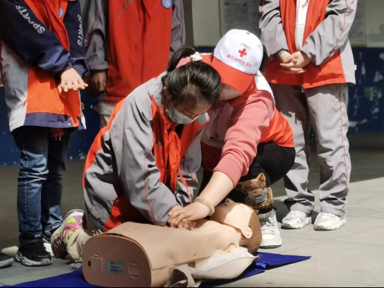 活动中,学校分年级进行了地震应急疏散演练和火灾疏散演练,随着警报声响起,师生迅速保护好头部,按照疏散路线快速转移到了预定的安全位置,整个疏散过程紧张而有序,随后市红十字聚仁救援队和区消防救援大队相关人员给学生们讲解了防拥挤踩踏知识、消防安全知识等,学生们在讲解和问答互动环节中了解了许多防灾减灾知识。