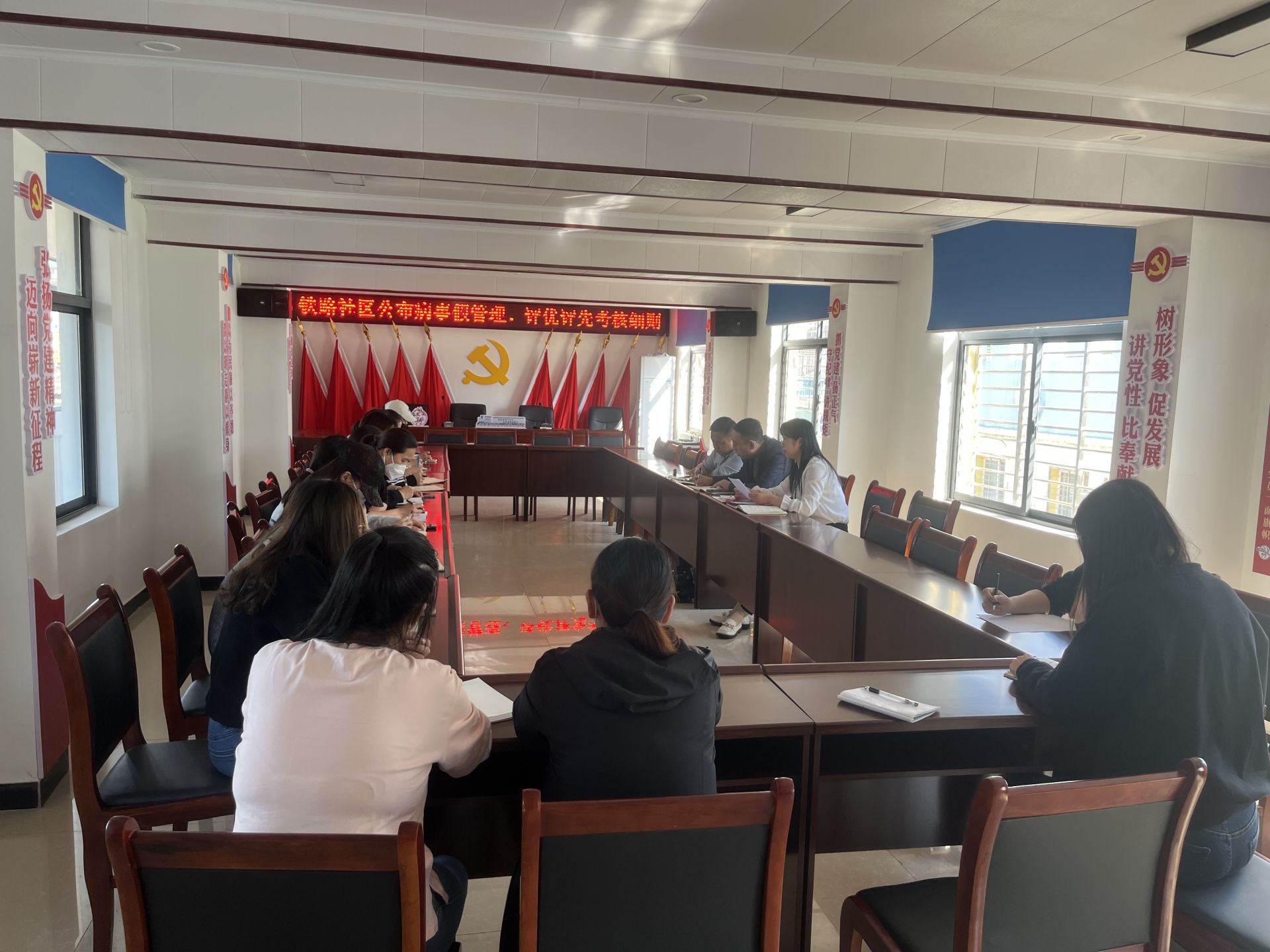 本次会议的召开进一步规范了全体工作人员的管理,强化了社区作风建设、严明了组织纪律,同时给大家敲响了警钟,以坐不住的紧迫感、慢不得的危机感、等不起的责任感全力以赴确保社区各项工作“跑在前头,争创一流”。