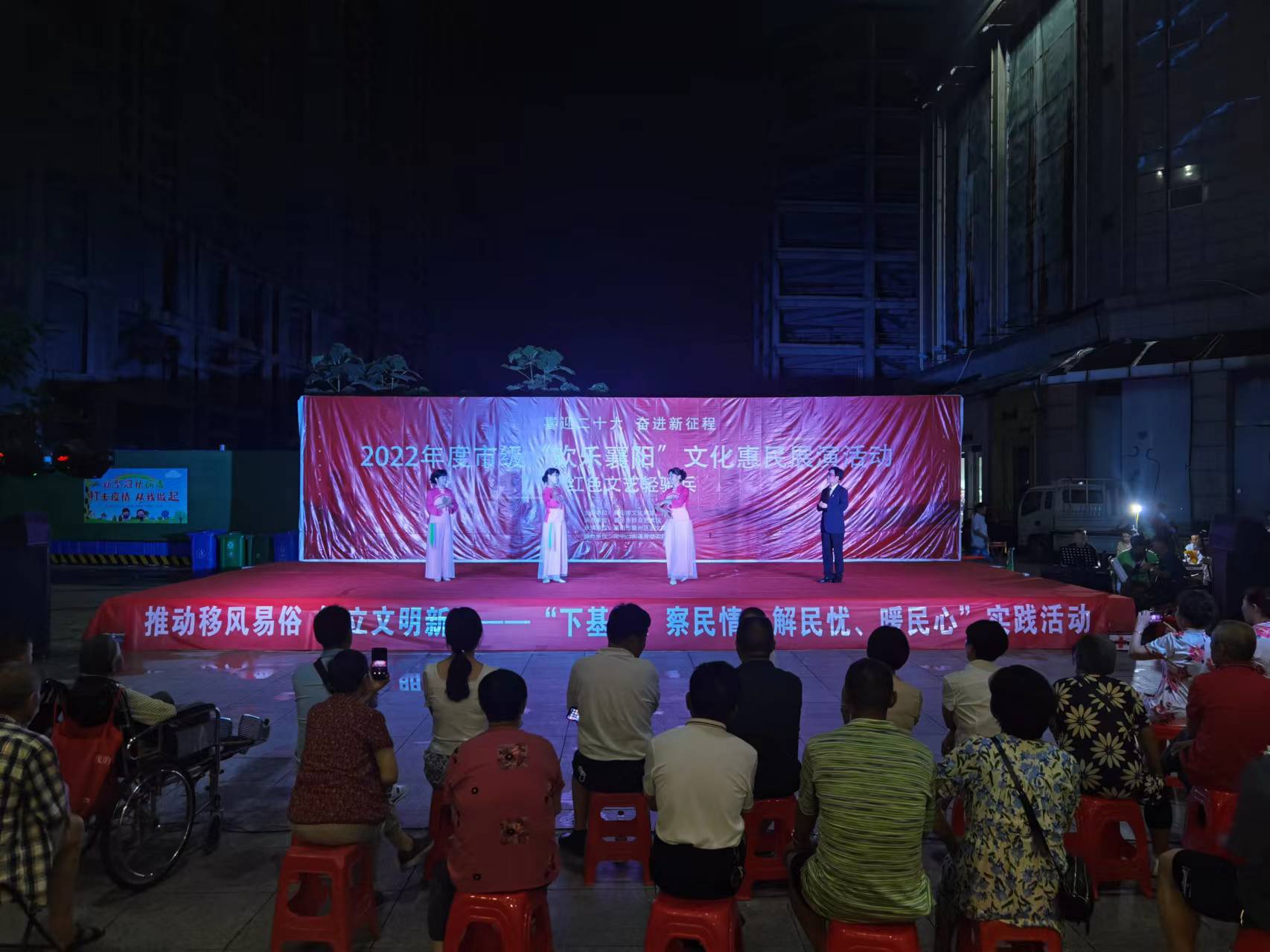 本网讯(通讯员 张璐)为不断满足群众日益增长的美好生活需要,增强辖区居民的获得感和幸福感, 6月13日晚,定中门街道劳动街社区举办了“喜迎二十大,奋进新征程”文化惠民演出活动。