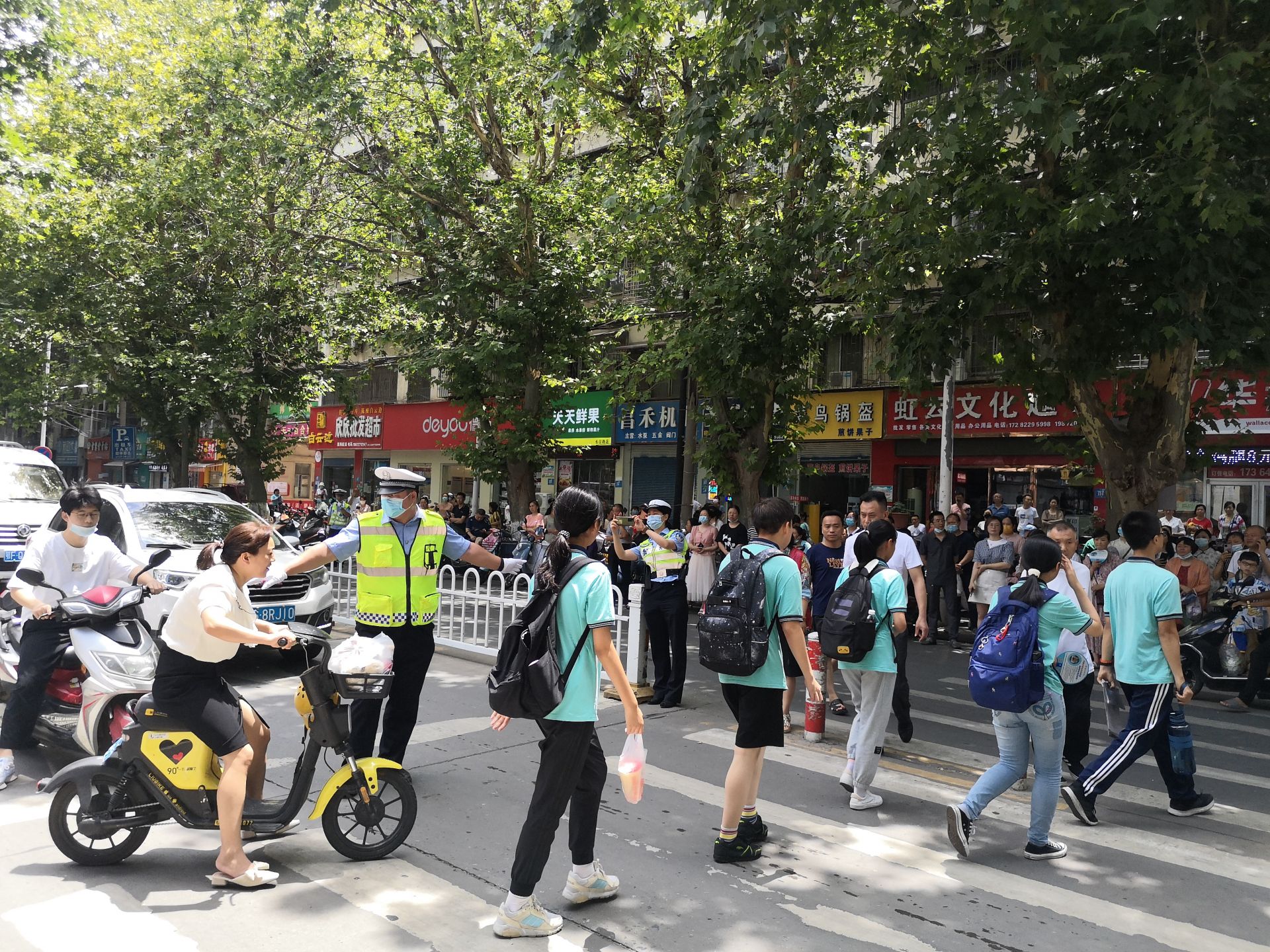 早上7点,代家台社区志愿者配合交警在实验中学考点周边进行交通疏通和劝导,引导车辆绕行,不鸣笛,劝导行人不大声喧哗,防止交通堵塞。同时,社区还发动党员志愿者配合社区民警在学校周边进行巡逻防控,以确保考生与送考家长的安全。开考后,志愿者们在学校周边的小区和沿街商铺进行环境维护和文明劝导,维持秩序。利用小区微信群发出倡议,倡议居民进行静音行动,开车出行减少鸣笛,从源头减少噪音,为考生营造一片“静土”。