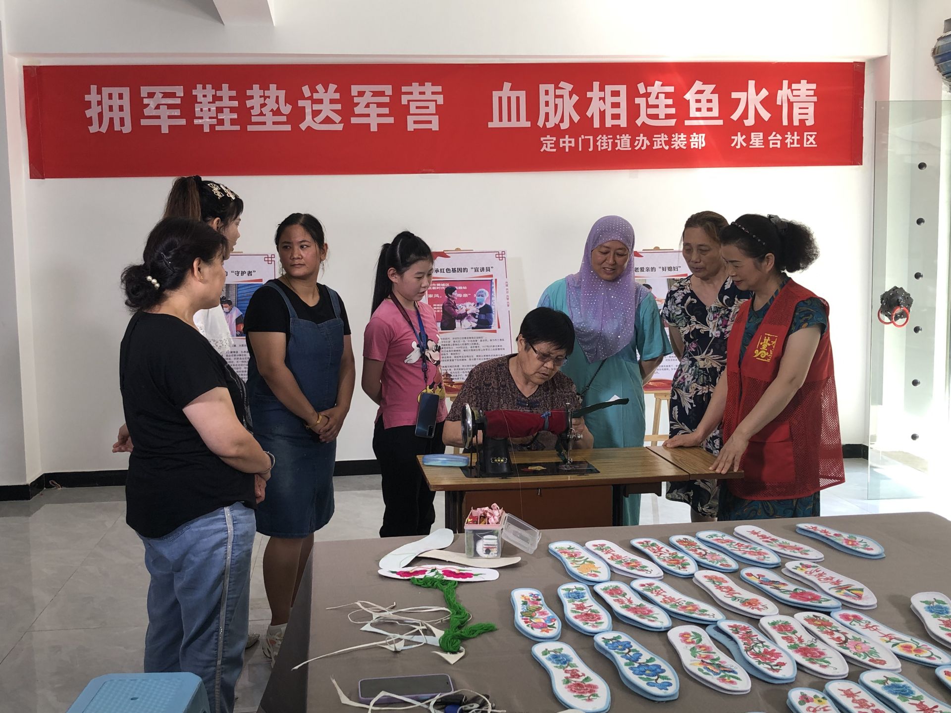 因此,水星台社区妇联和定中门街道武装部一起开展“拥军鞋垫送军营,血脉相连鱼水情”活动,由刘爱云现场教授大家制作鞋垫。活动现场,社区妇女、志愿者踊跃报名参加,一针针、一线线认真缝制很多不同型号的鞋垫。社区维吾尔族群众还把代表民族团结的石榴花、纯洁坚强的雪莲花绣在鞋垫上,用她们的方式表达对亲人子弟兵的感恩之情。这些做工整齐、图案丰富、寓意美好的拥军鞋垫寄托了社区各族群众对军人的殷切希望和美好祝福。