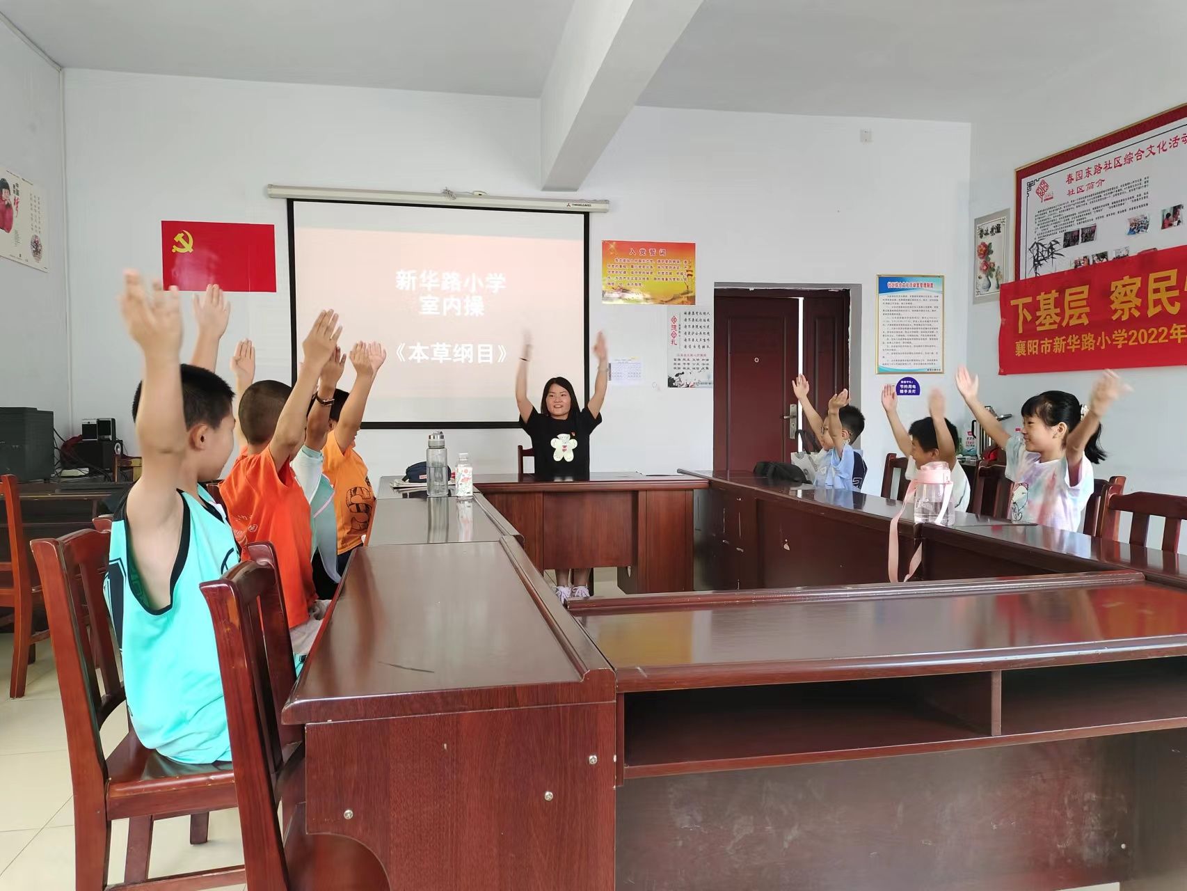 新华路小区党总支书记胡颂谊提醒孩子们如果遇到同伴落水溺水,一定要及时呼救,远离野外危险水域,绝不当“孤泳者”,引导孩子远离溺水危险,养成“珍爱生命、严防溺水”的防范意识。随后,在党员教师志愿者张丹老师的带领下,孩子们在室内舞动,学习本草纲目之防溺水手势操,跟着欢快的音乐,轻松了解防溺水安全知识。