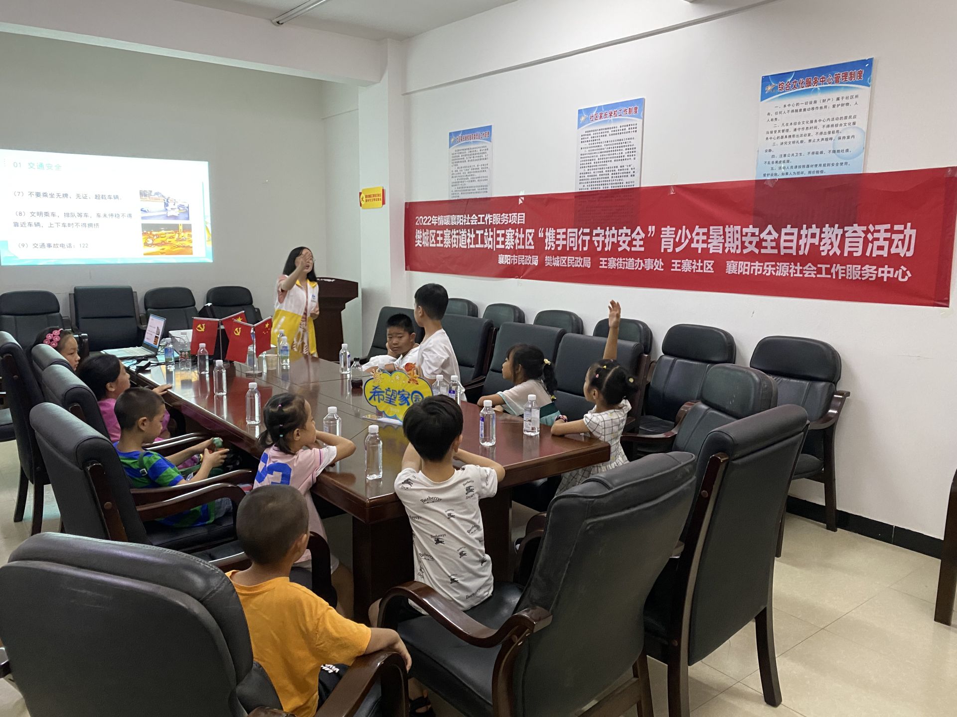 本网讯(通讯员 李夕希)为确保辖区孩子过一个安全、愉快、有意义的暑假,8月5日下午,王寨社区联合襄阳市乐园社会工作服务中心开展“携手同行 守护安全”暑期安全自护教育活动。